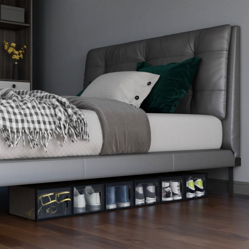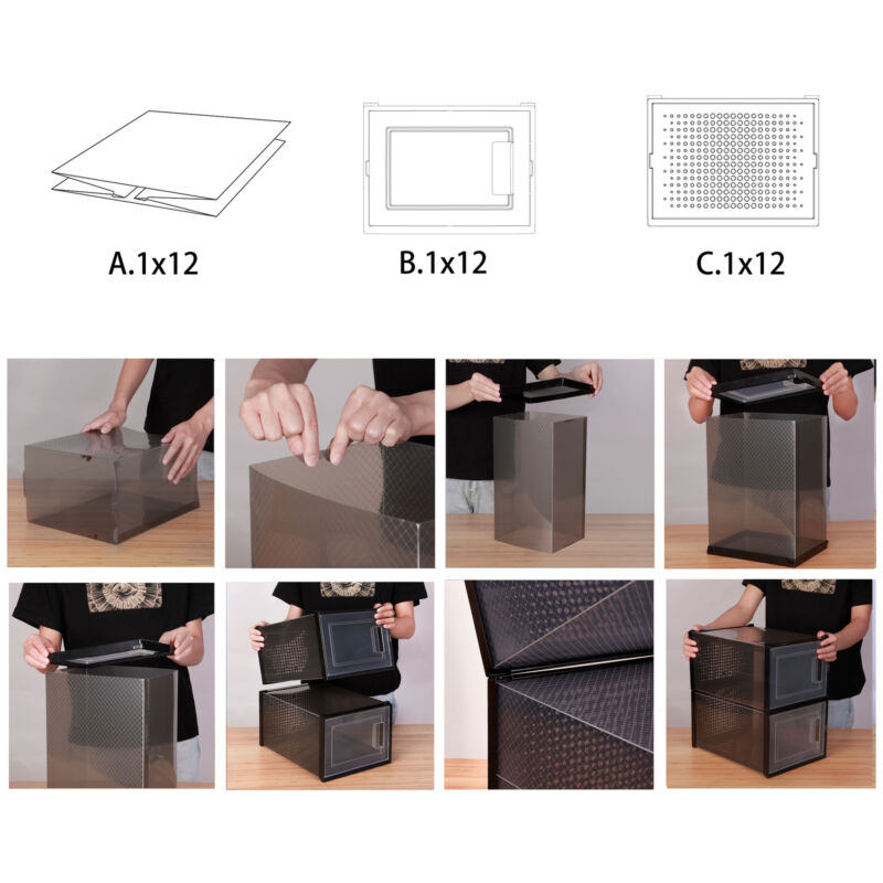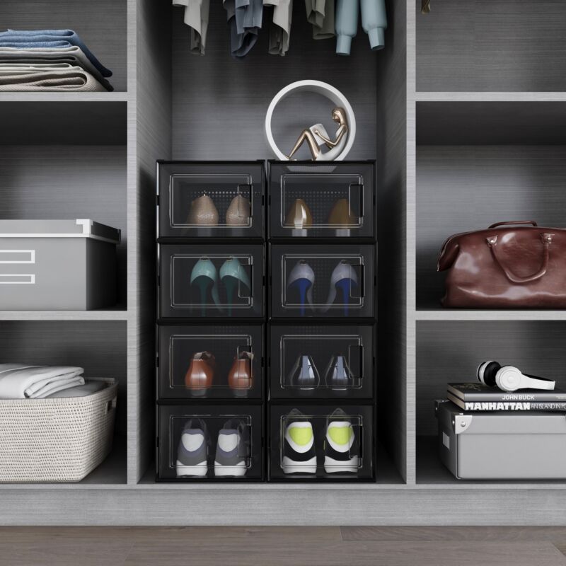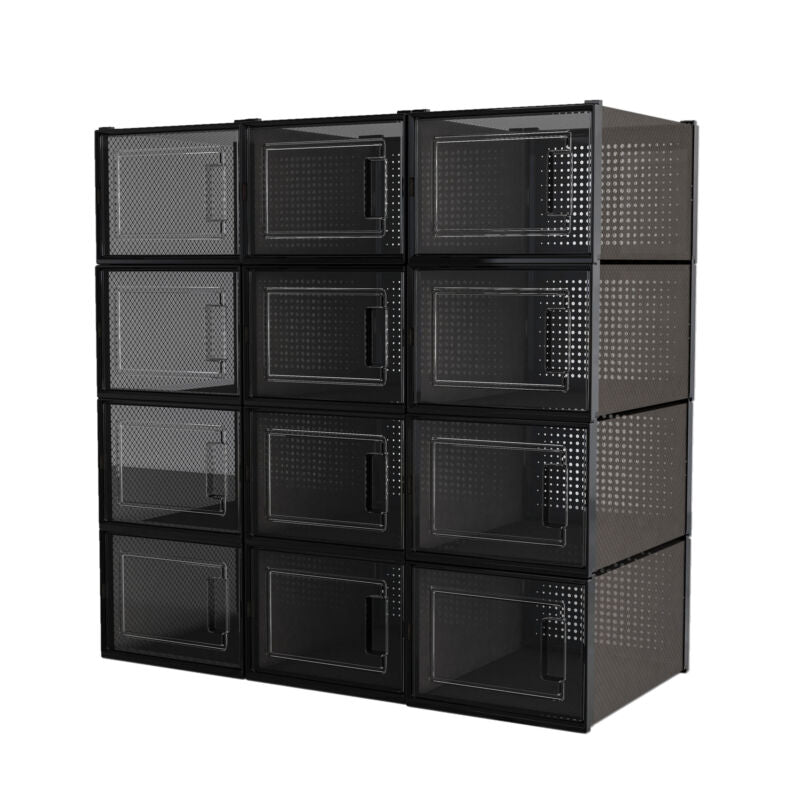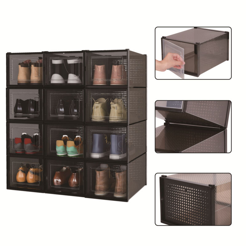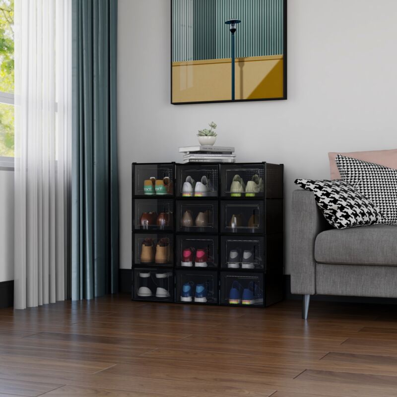 Mondeer 12 PCS Shoe Cabinet Stackable Shoe Box Organiser Size up to UK 11 Black