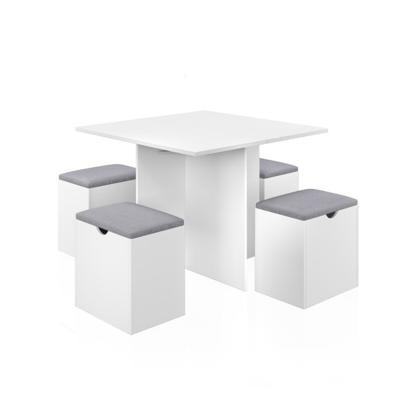 Mondeer 5PC Wooden Dining Table Set 4 Stool Compact Space Saver Kitchen White