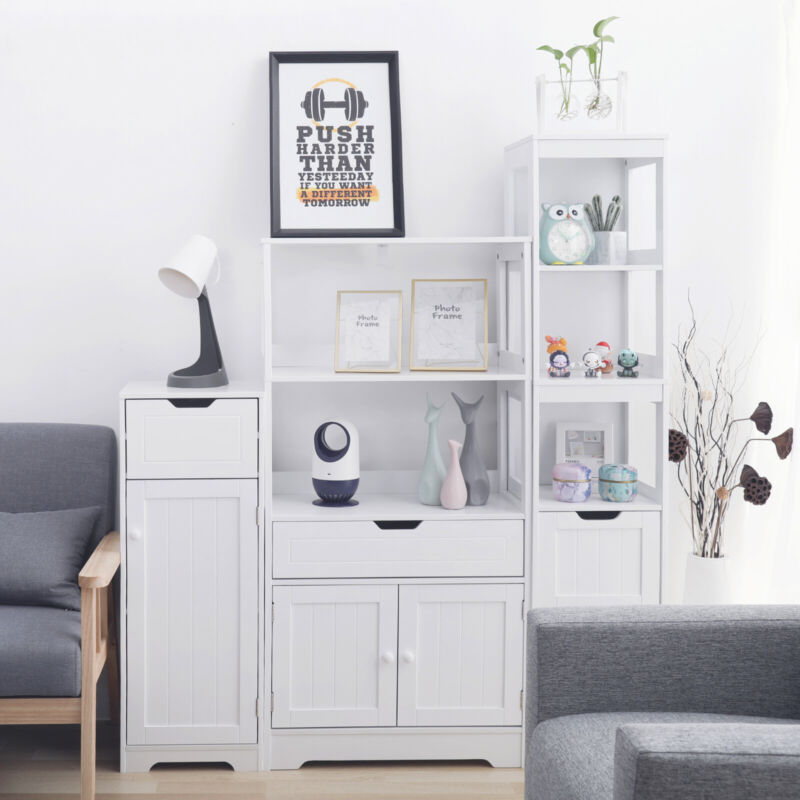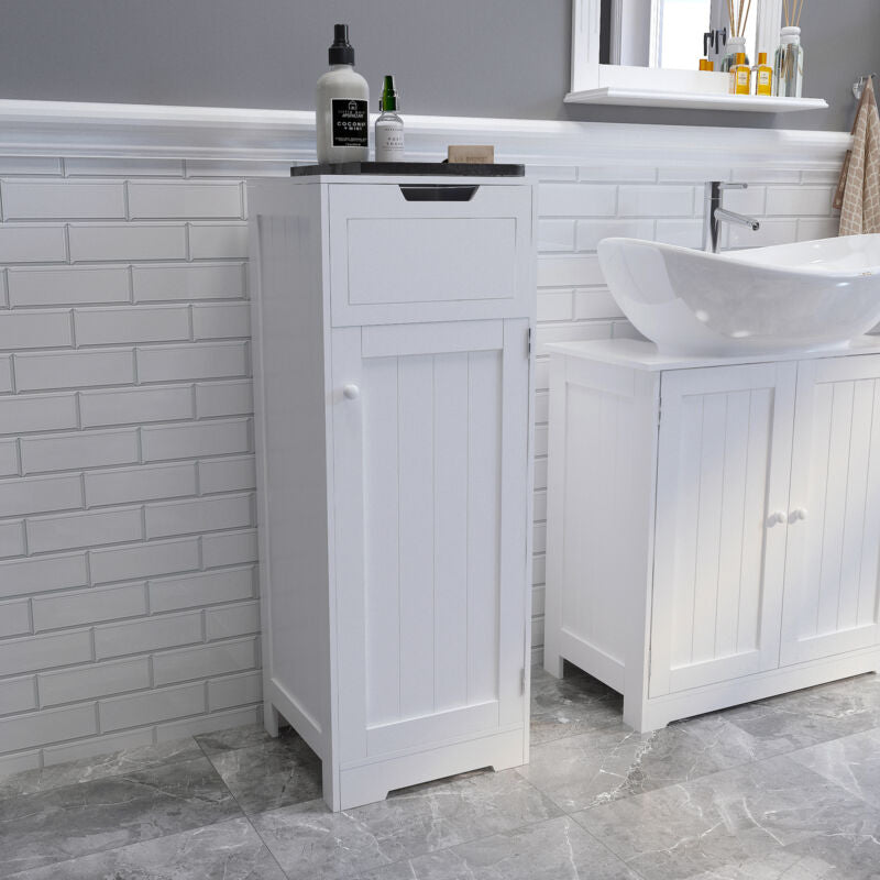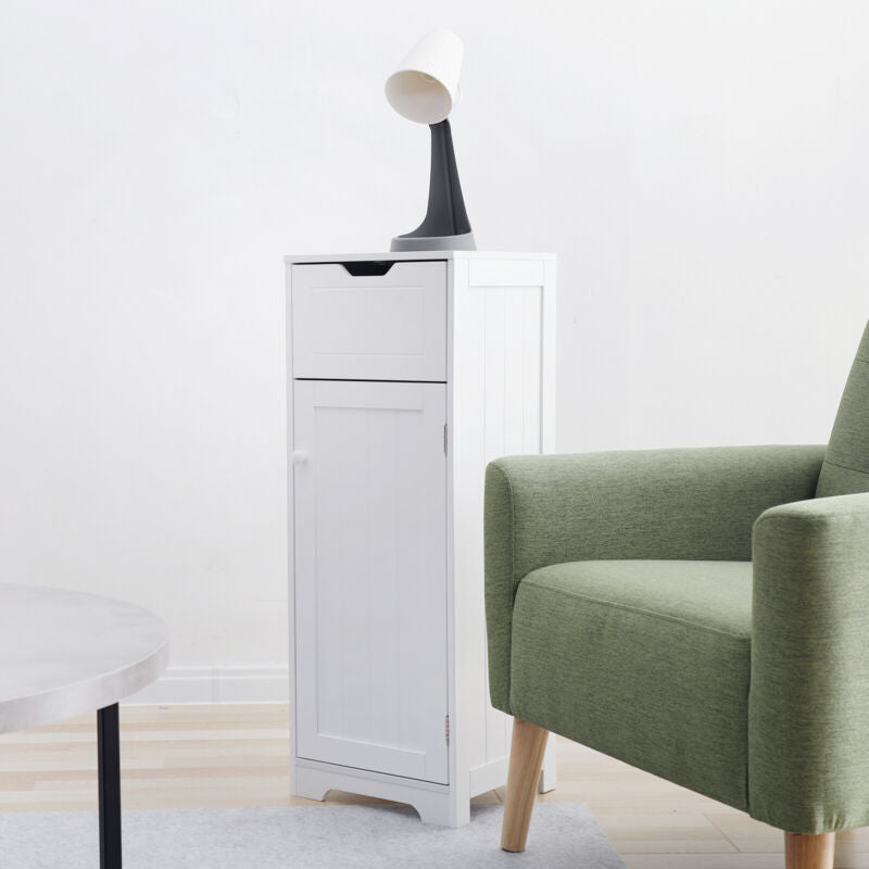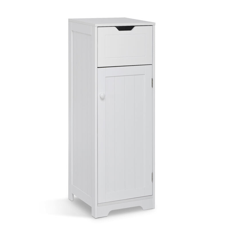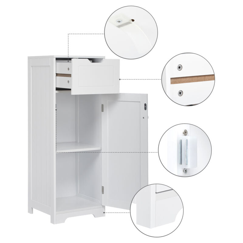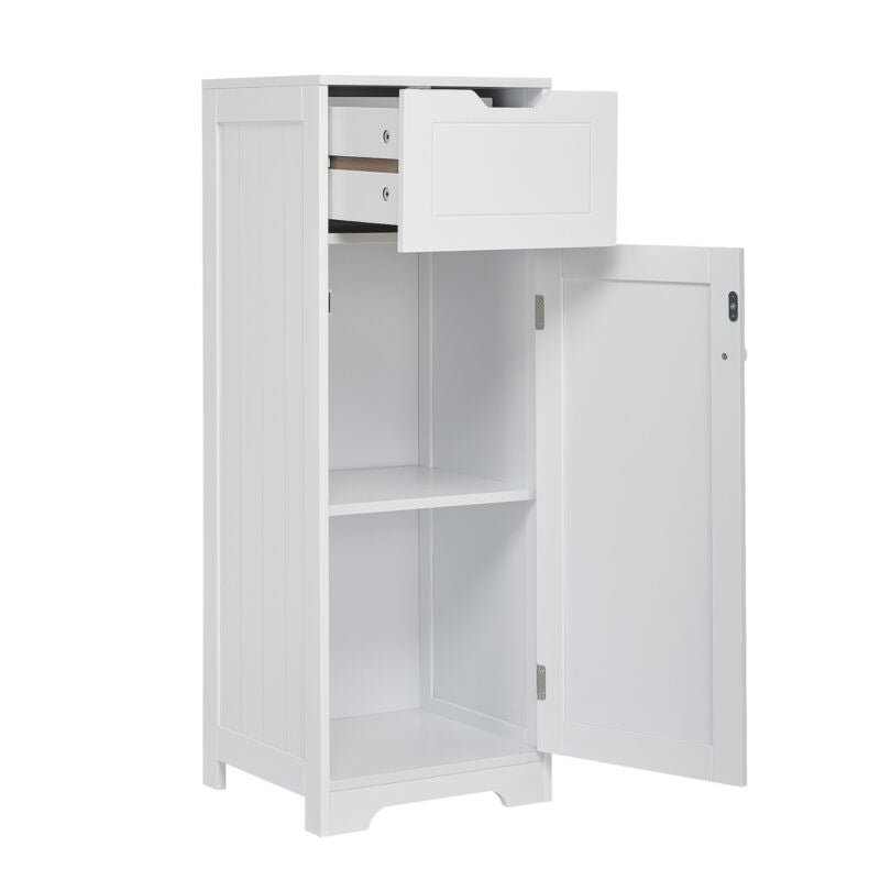 Mondeer Bathroom Floor Cabinet Storage Unit w/ 1 Drawer 1 Door 2 Shelves White