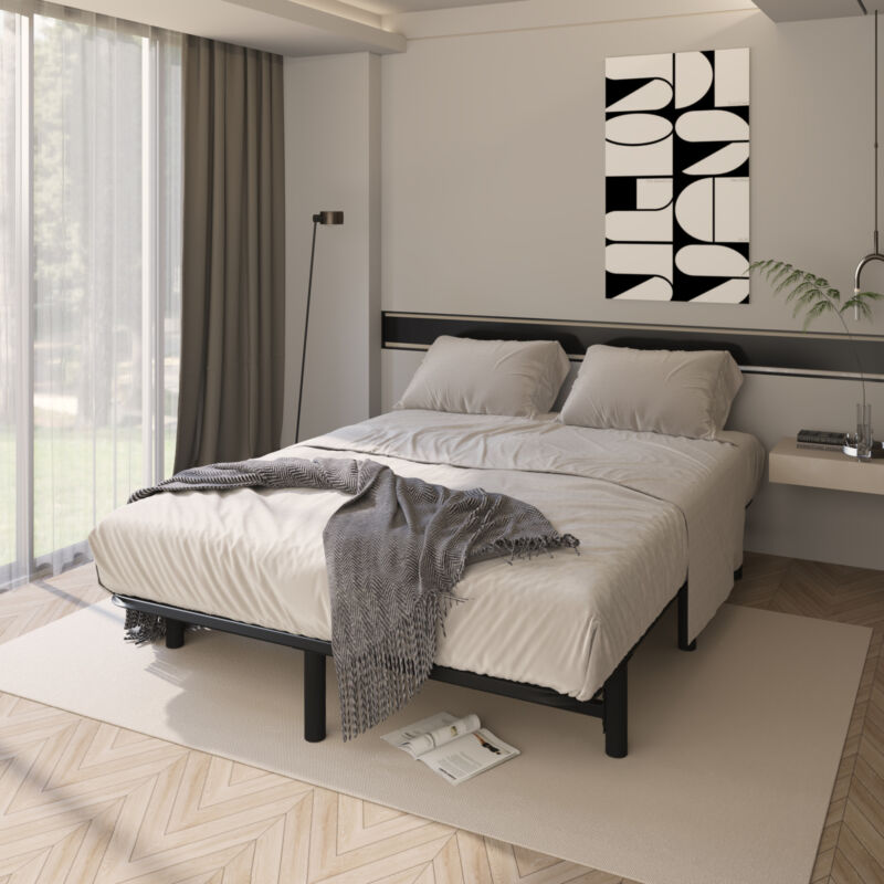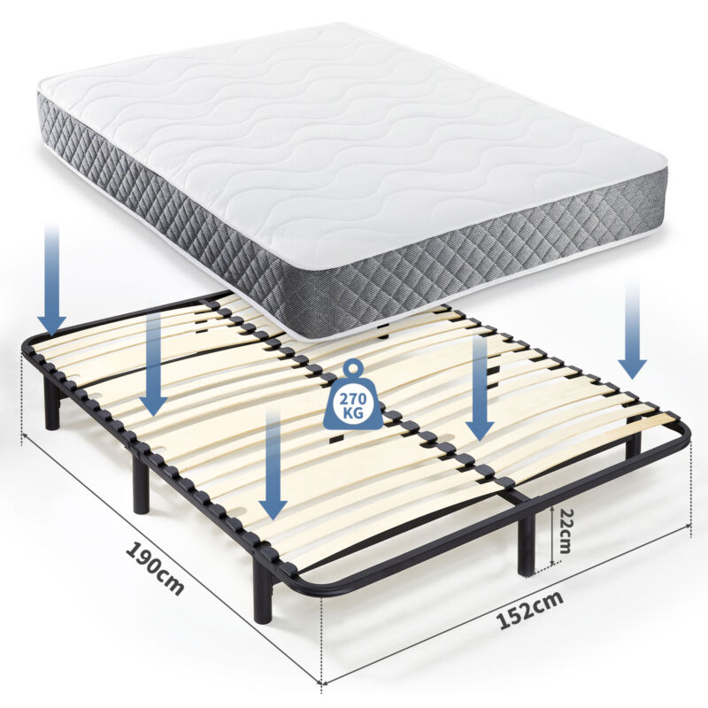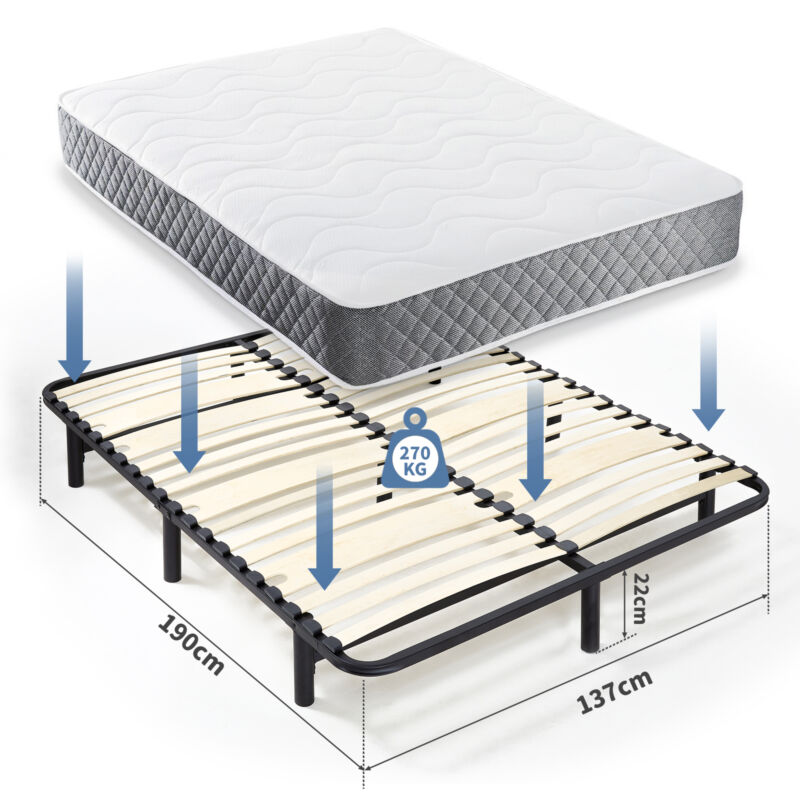 Mondeer Double Bed Base Wooden Slats Metal Supporting Structure 137x190/152x190