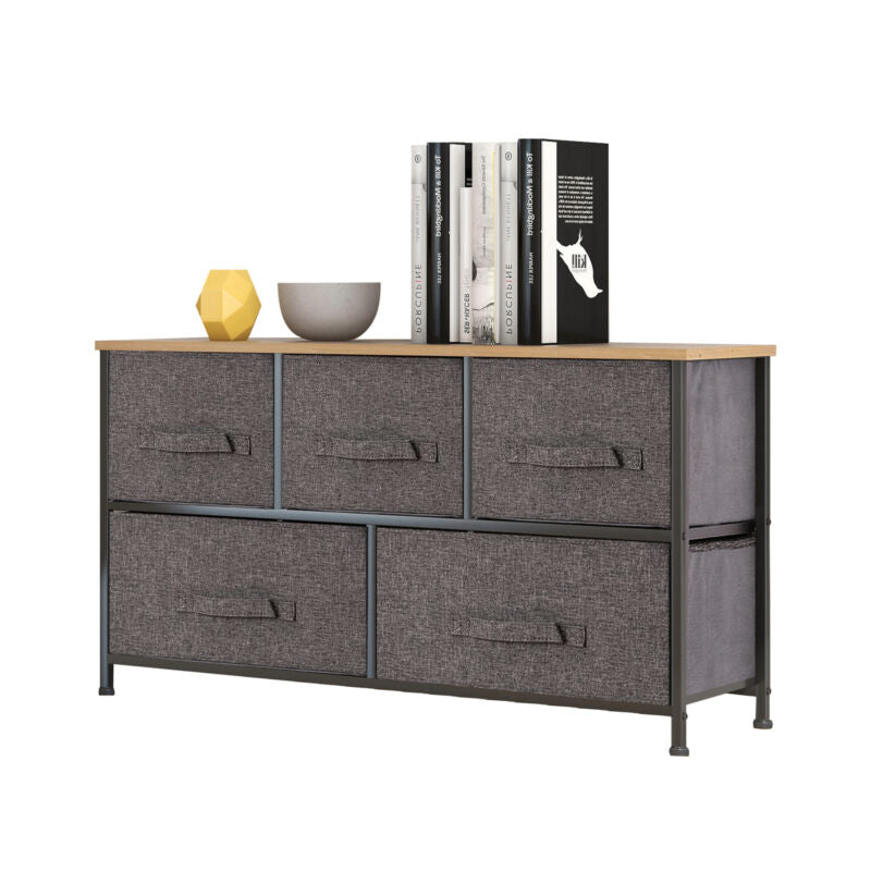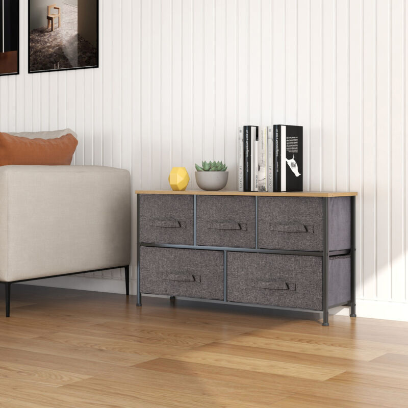 Mondeer Fabric Chest of 5 Drawers Grey Storage Organizer Unit with Metal Frame
