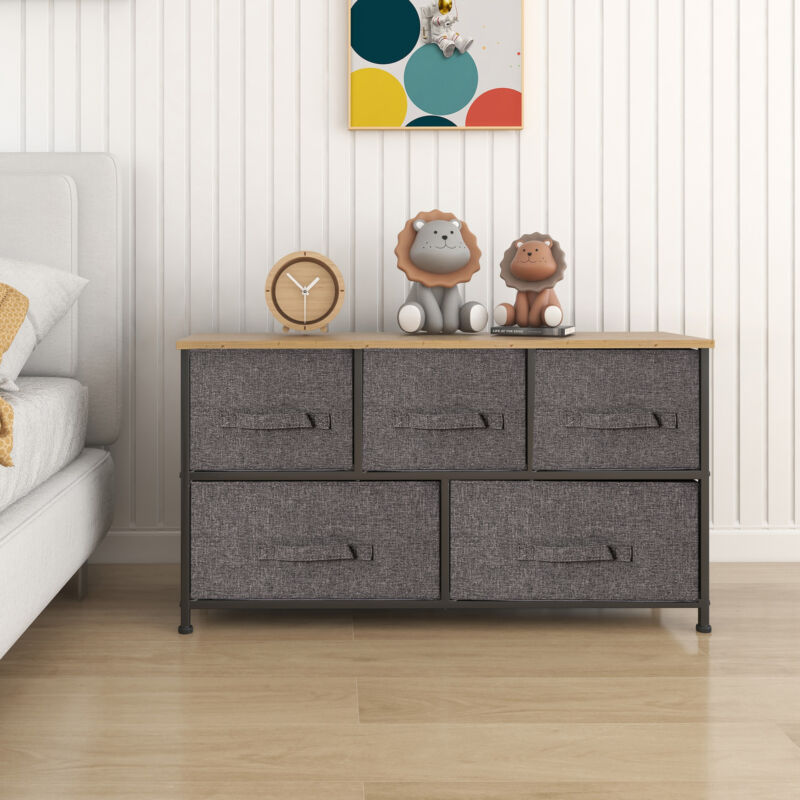 Mondeer Fabric Chest of 5 Drawers Grey Storage Organizer Unit with Metal Frame