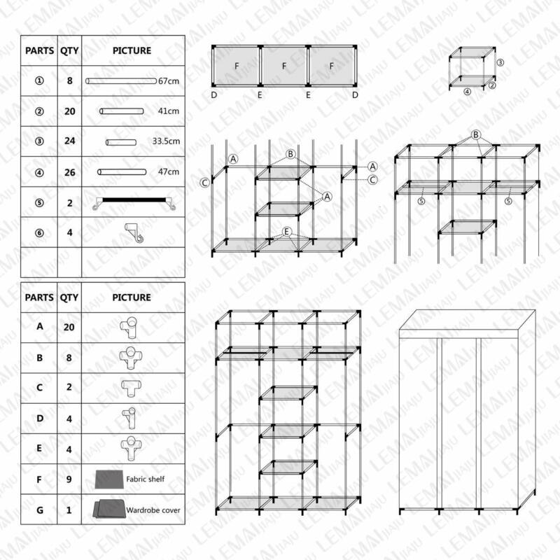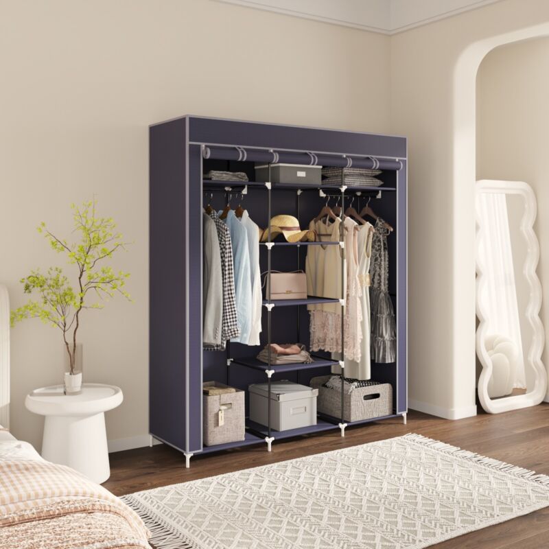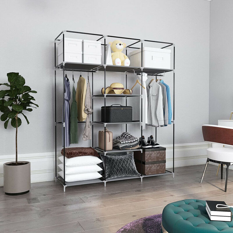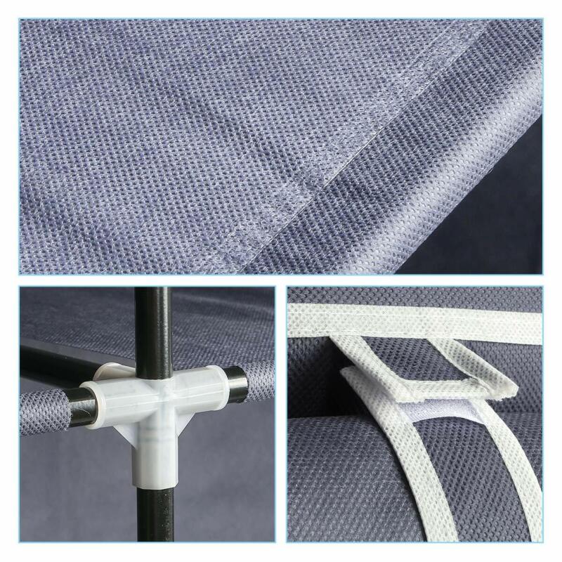 Mondeer Grey Fabric Canvas Wardrobe With Clothes Hanging Rail Shelves Storage