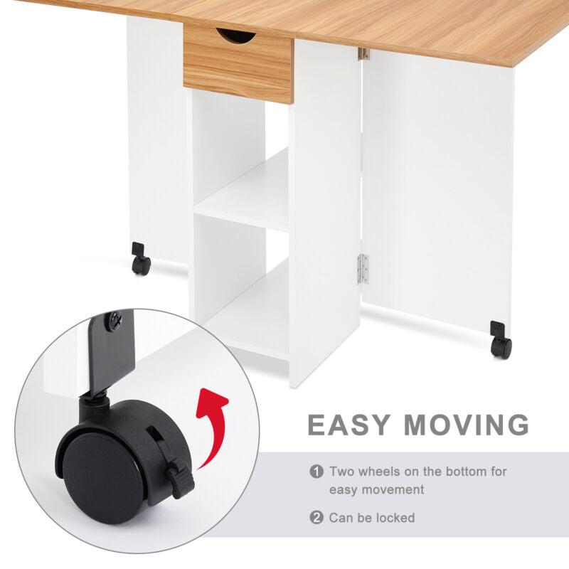 Mondeer Mobile Folding Dining Table Drop Leaf Table with 1 Drawer White & Oak