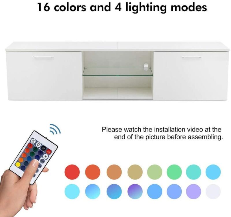 Mondeer Modern 160cm TV Unit Cabinet Stand High Gloss Door with LED Lights White