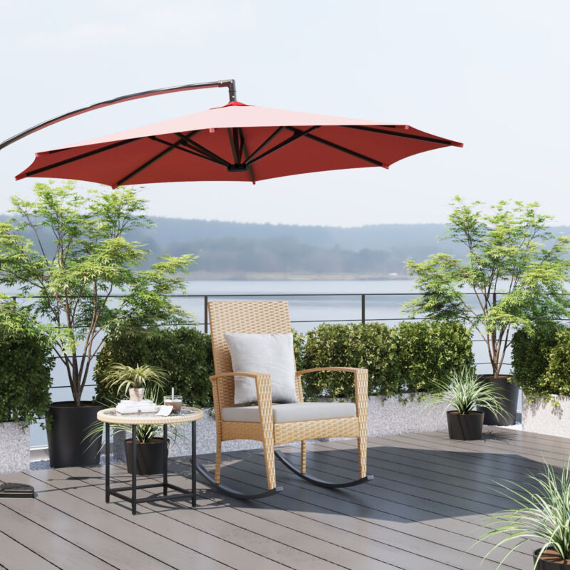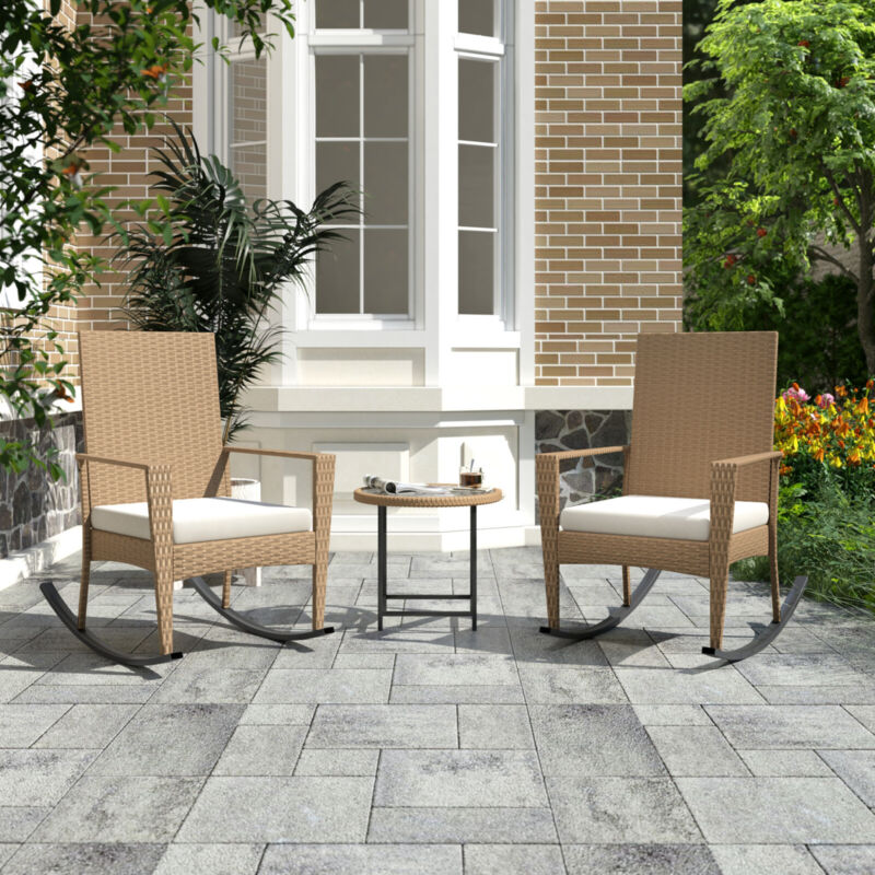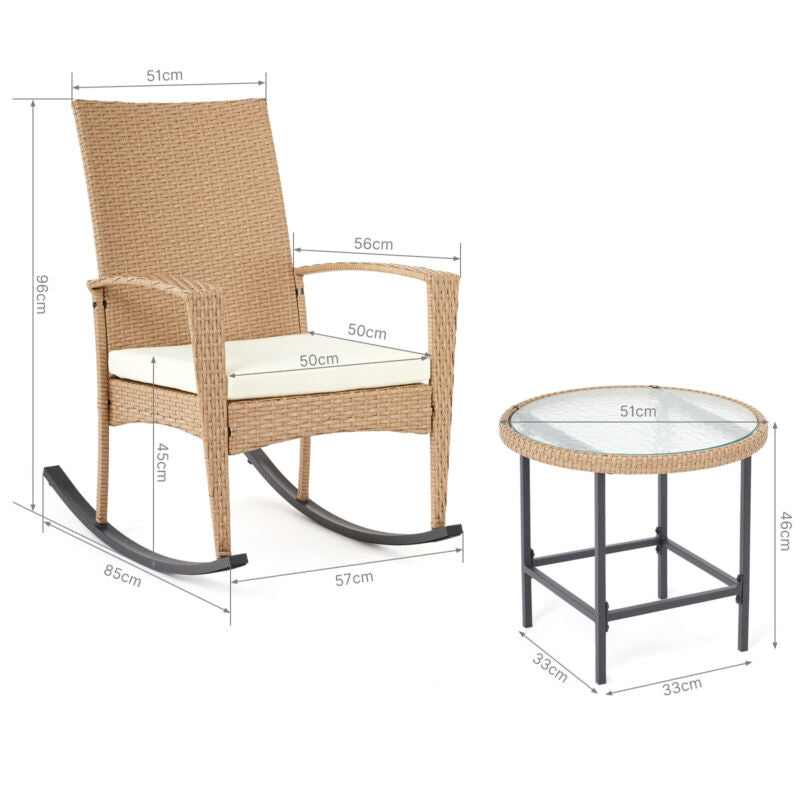 Mondeer Rocking Chair Garden Rattan Chair Recliner with Cushion and Table