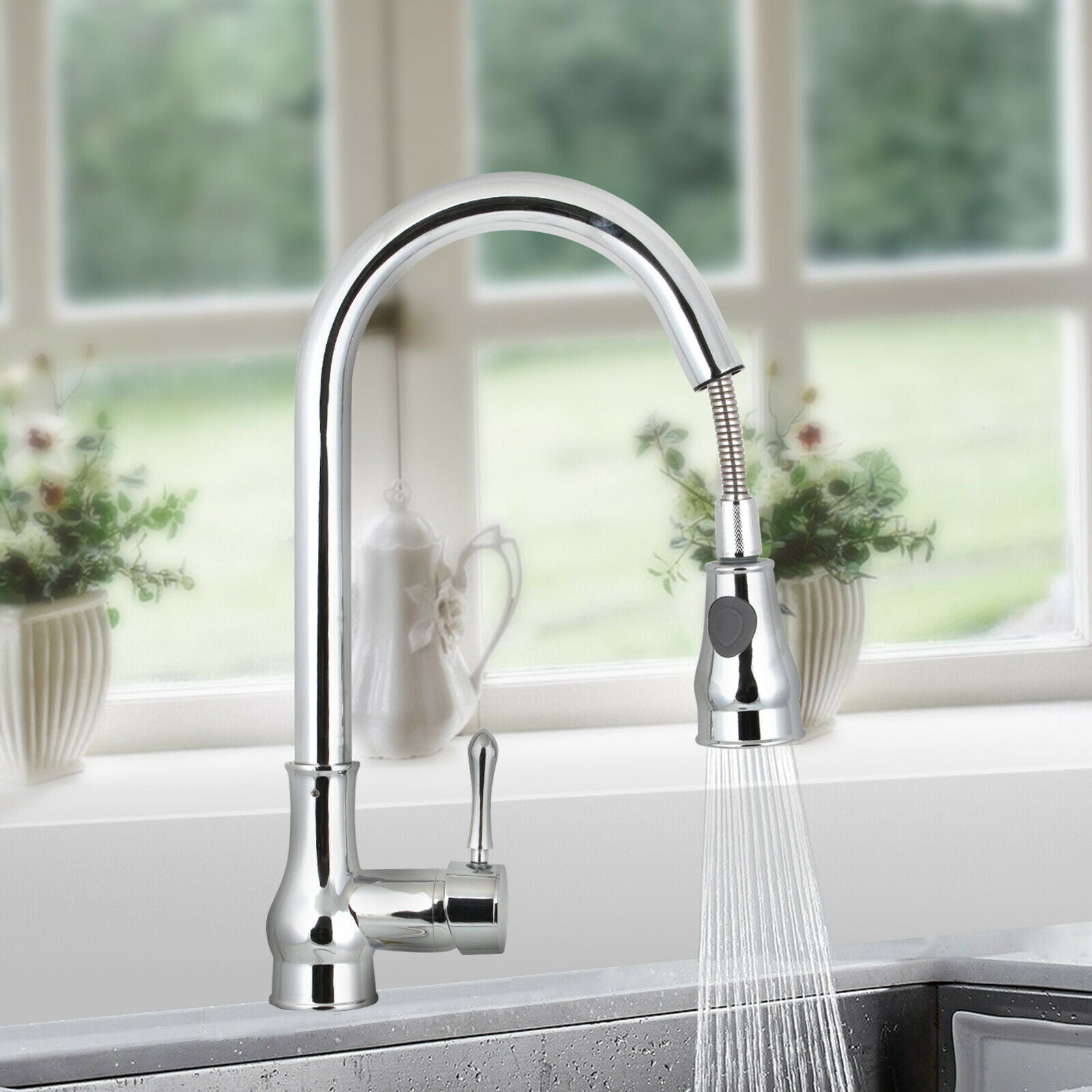 Mono Kitchen Mixer Tap Pull Out Swivel Spout Single Lever Faucet Hot & Cold