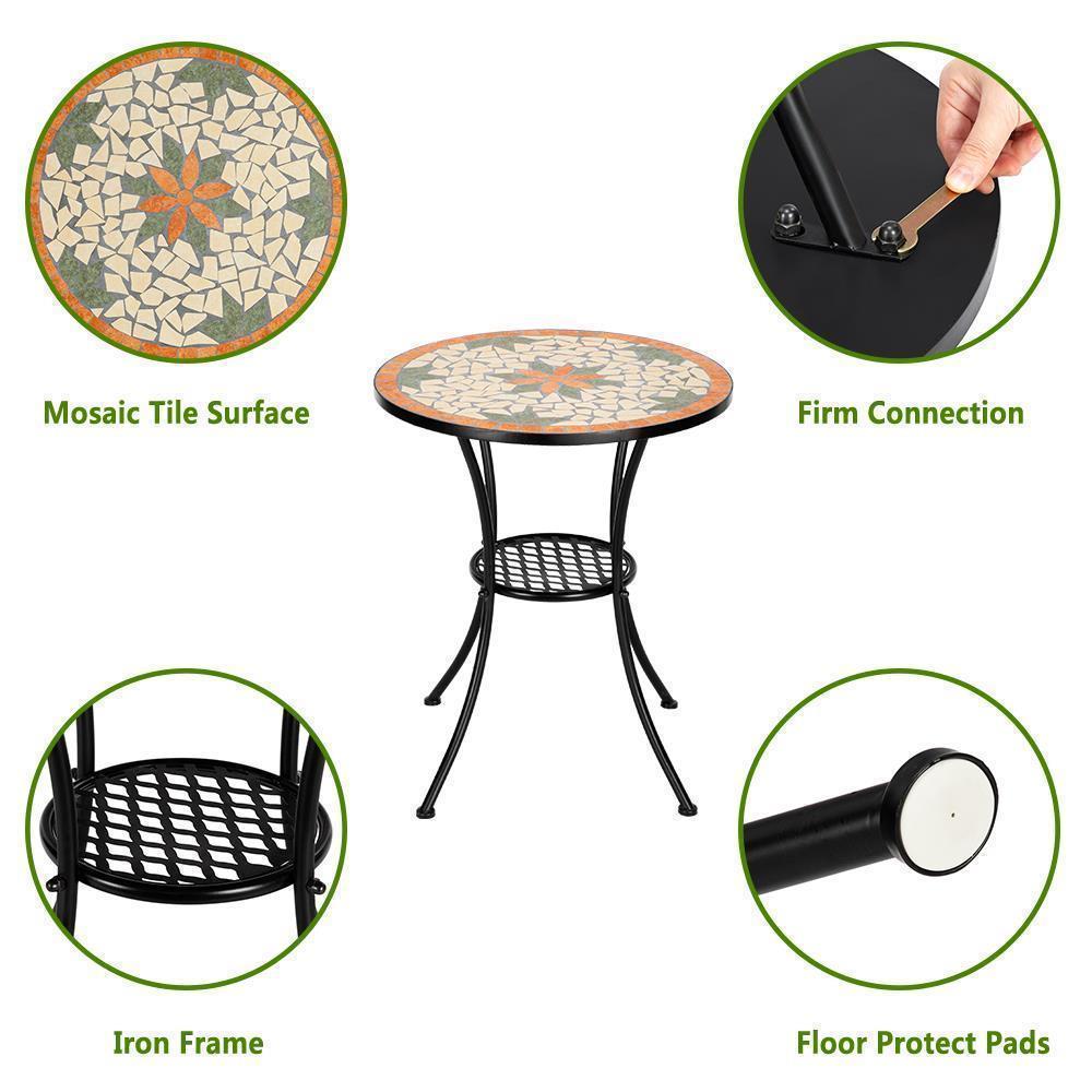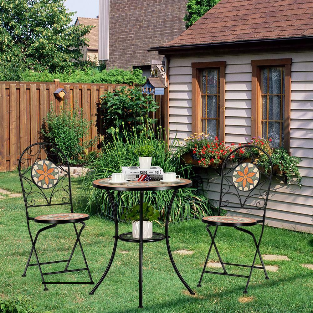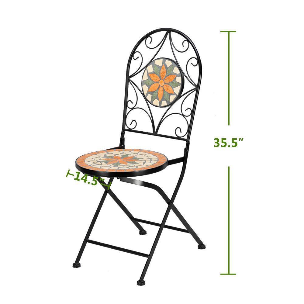Mosaic Bistro Set Outdoor Patio Garden Furniture Side Table Set Folding Chairs
