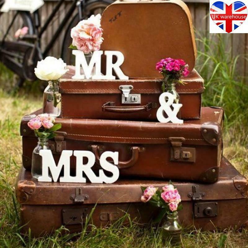 Mr and Mrs Wedding Sign Sweetheart Table Decorations Stand Wooden Letters White