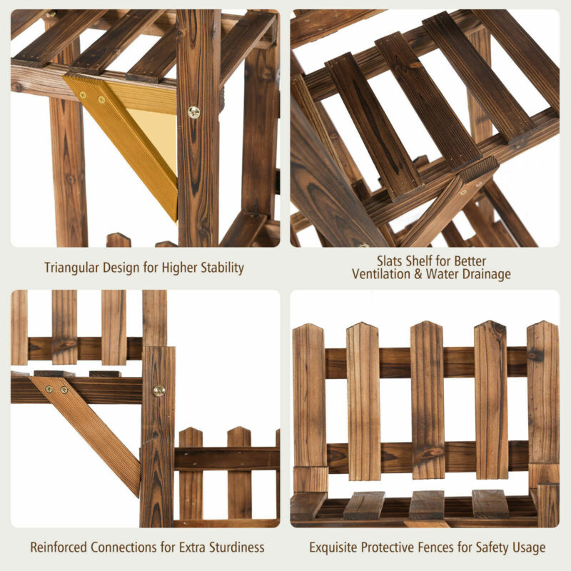 Multi-Layer Wooden Plant Pot Stand Indoor Outdoor Flower Display Shelf Rack