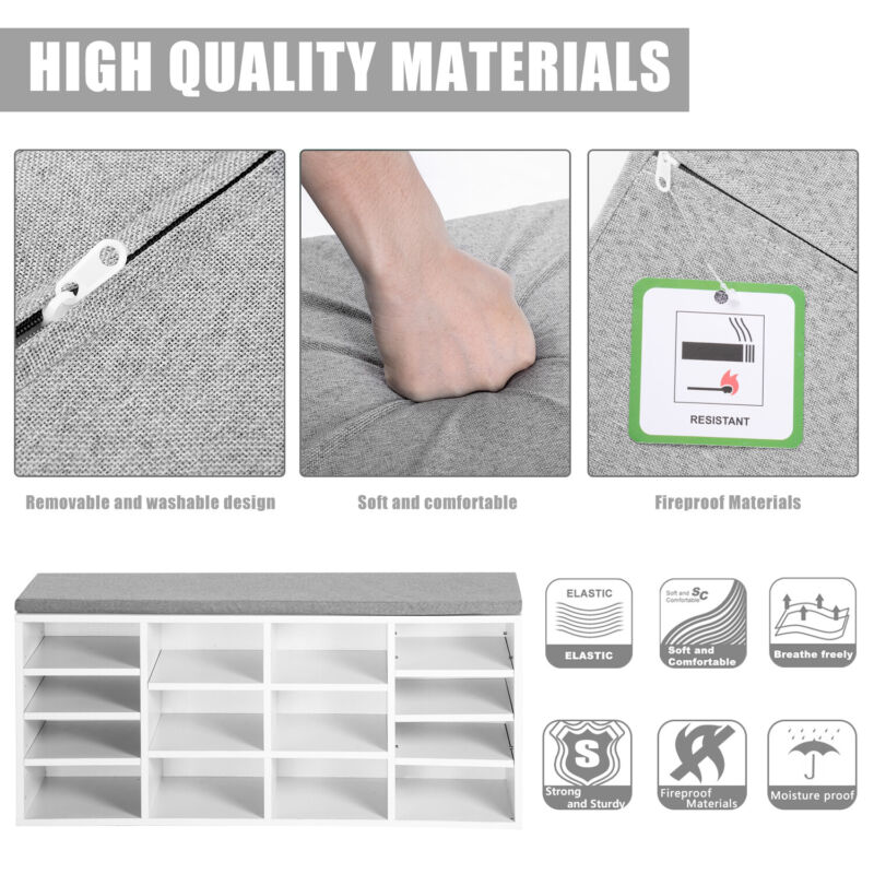 Multi-Storage Shoe Rack w/ 14 Compartments Cushion Moving Shelves for Home White