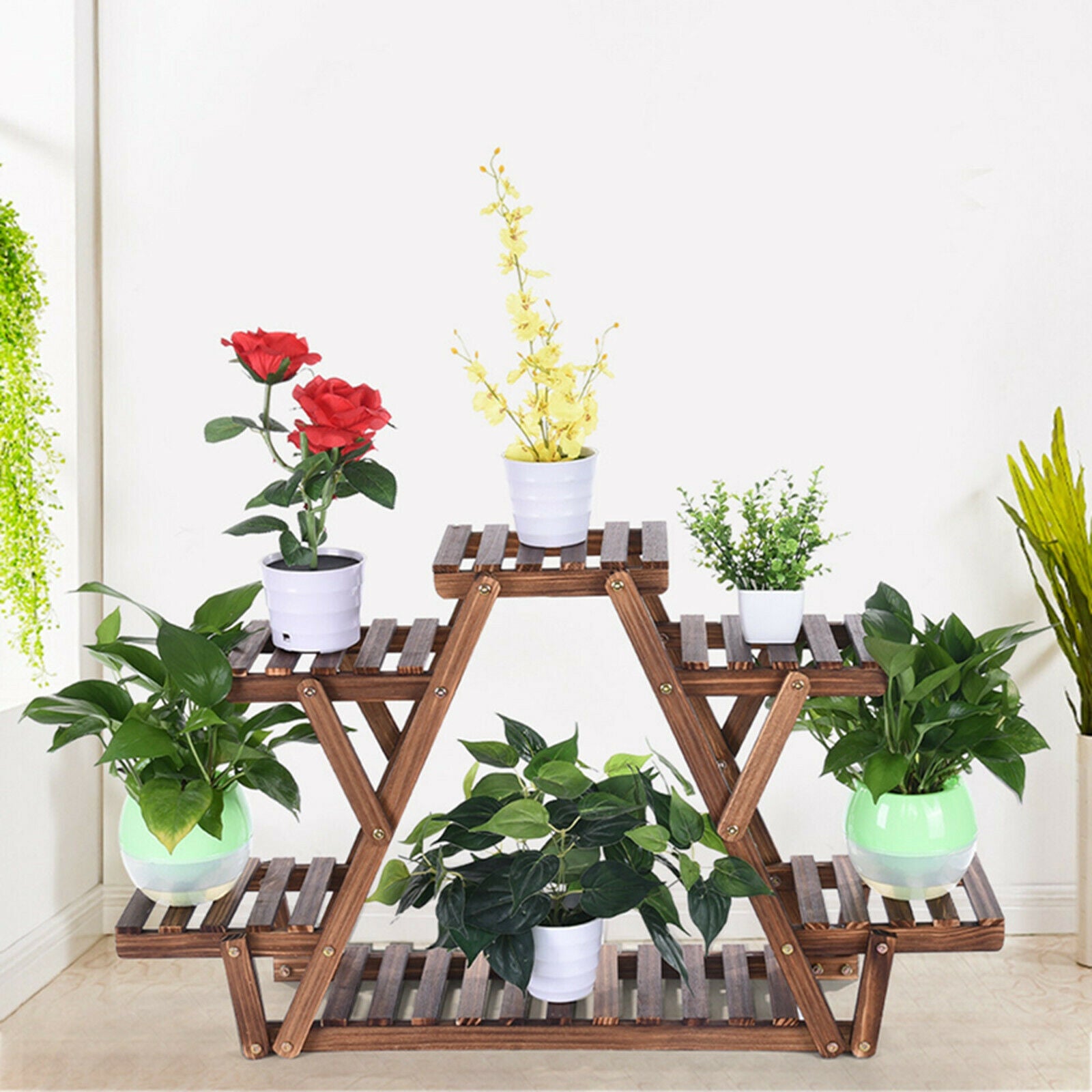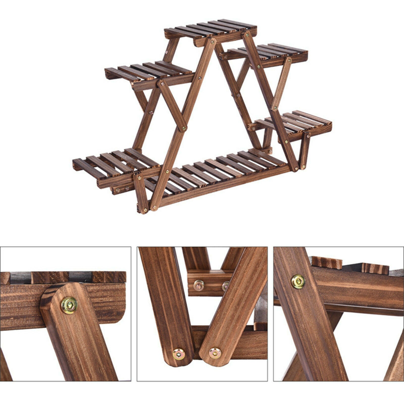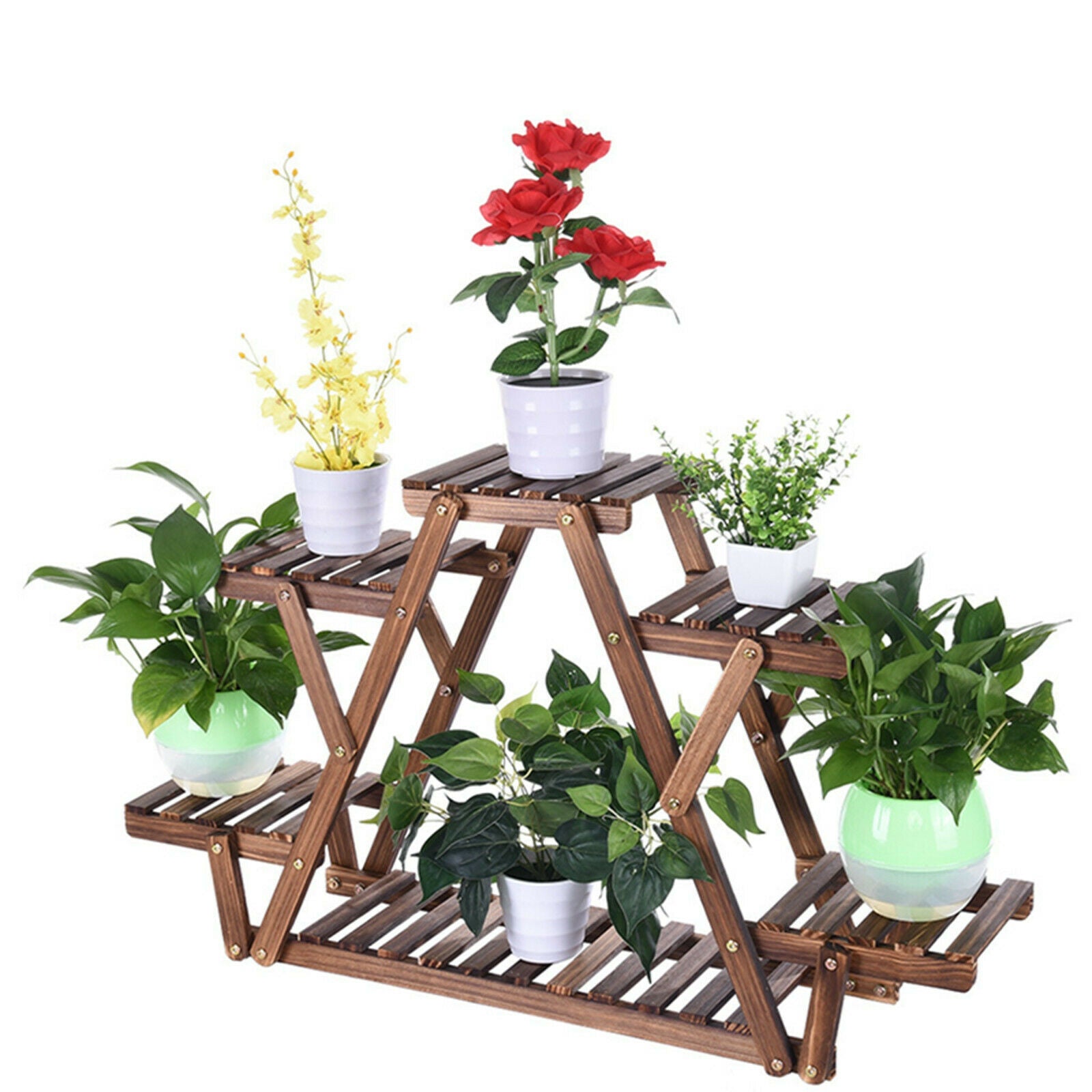 Multi Tier Wood Flower Rack Plant Stand Wood Shelves Bonsai Display Shelf Indoor