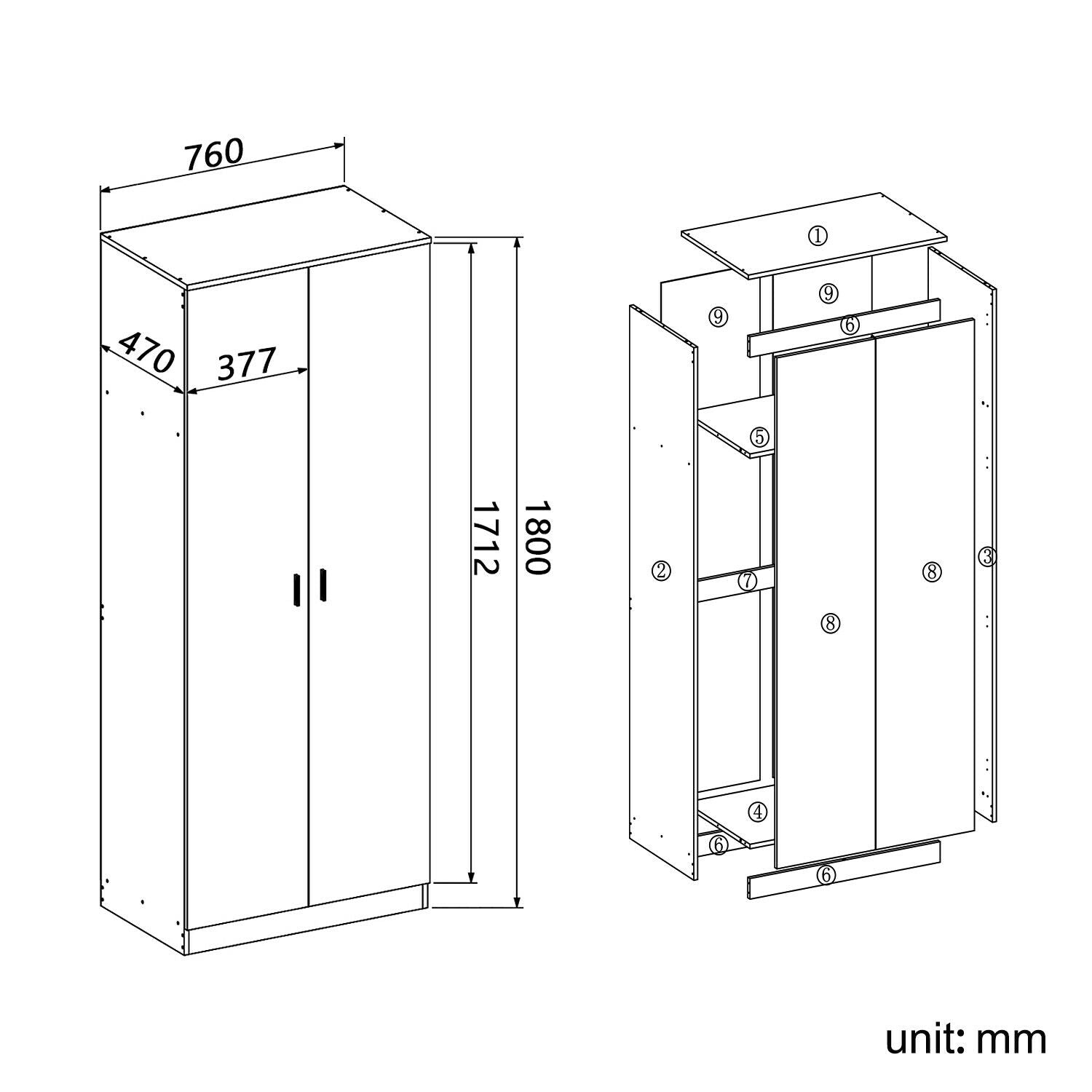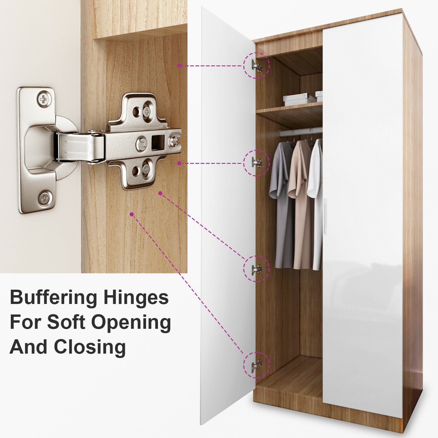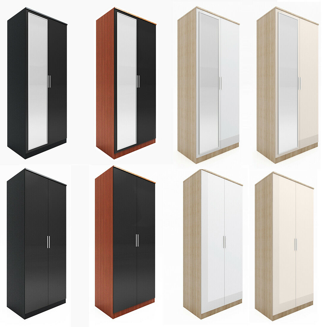 Multicolor 2 Door Wardrobe High Gloss Storage Cupboard Hanging Rail Furniture