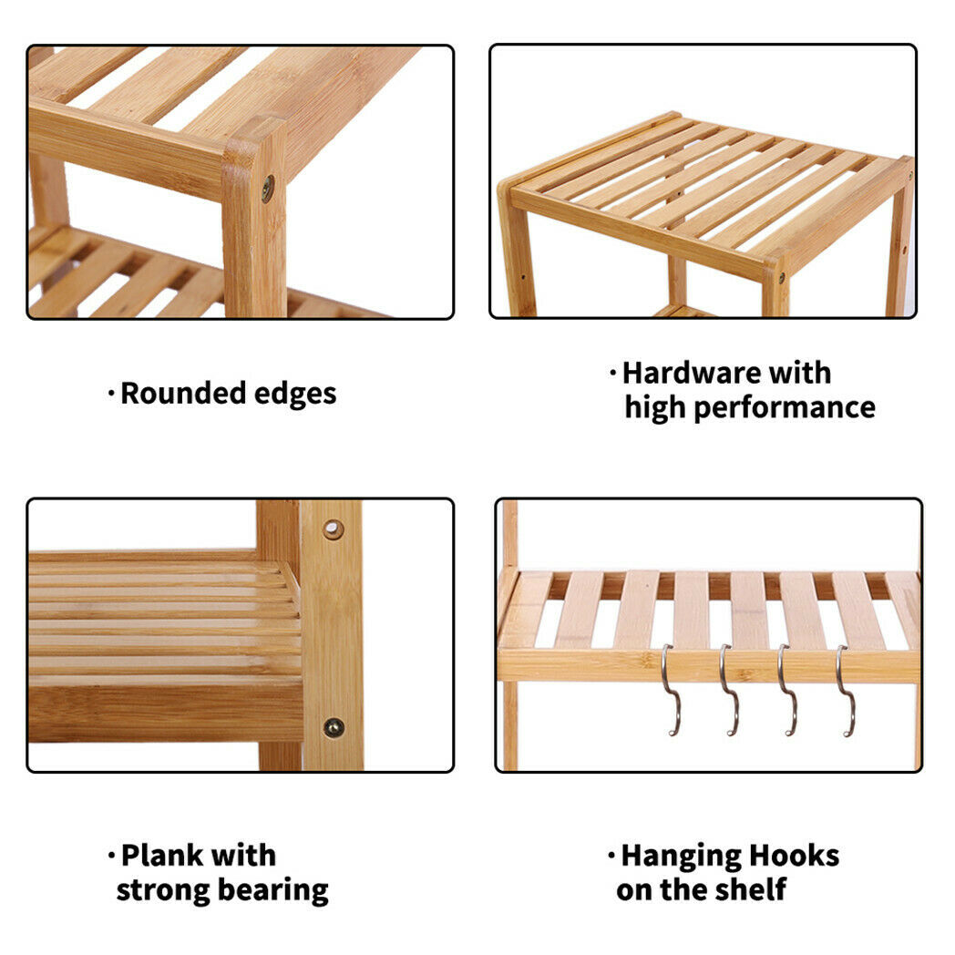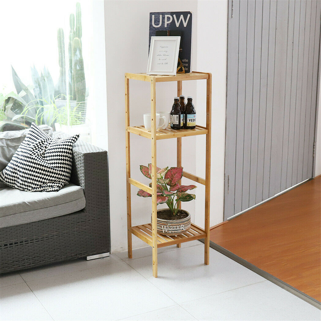 Multifunction Bamboo Shelf Free Standing Bathroom Tower Rack Corner Storage Unit