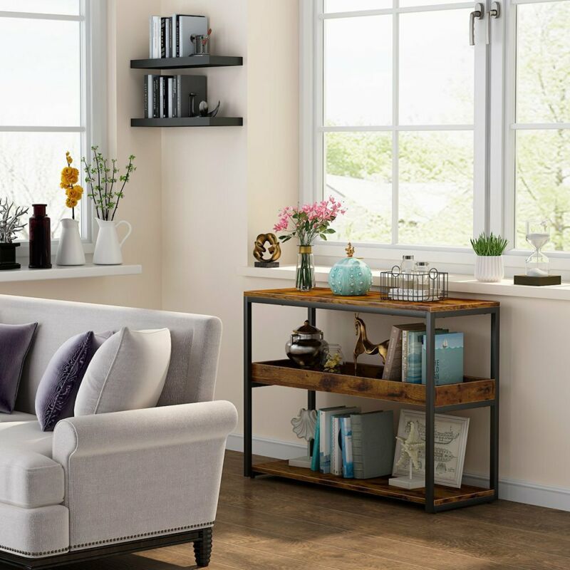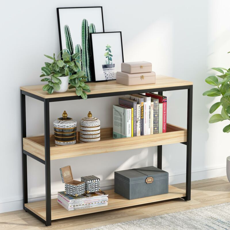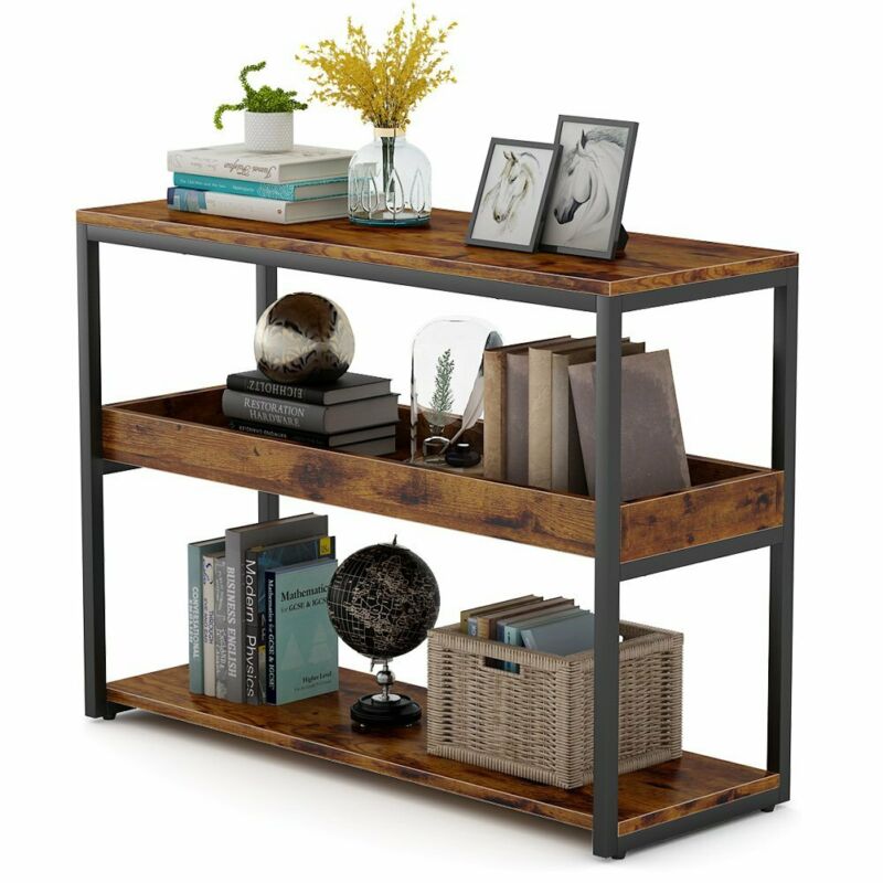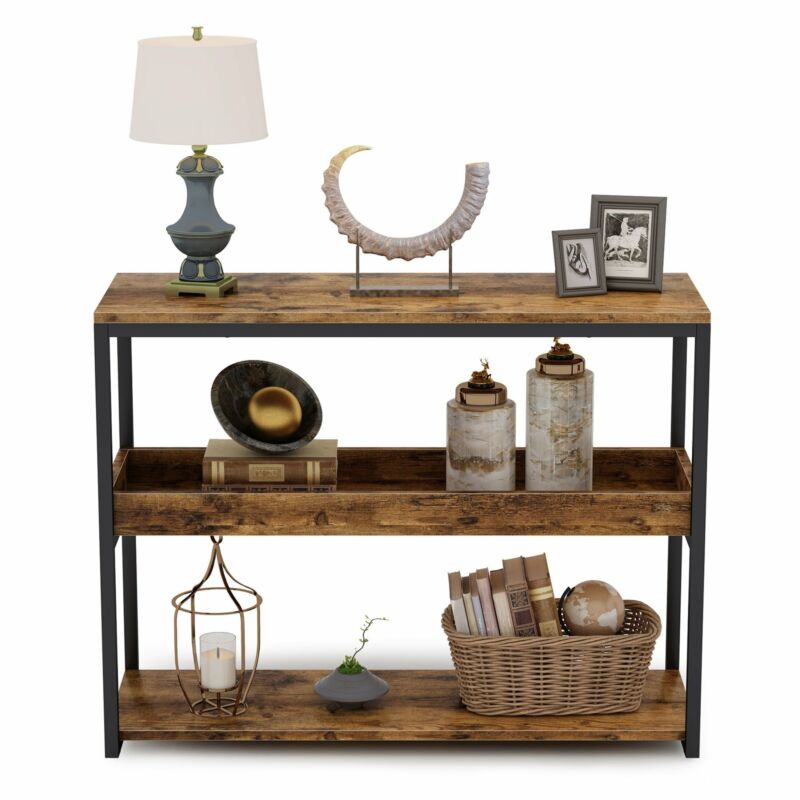 Multipurpose Console Side Table Maple Brown Entryway Sofa Table for Living Room