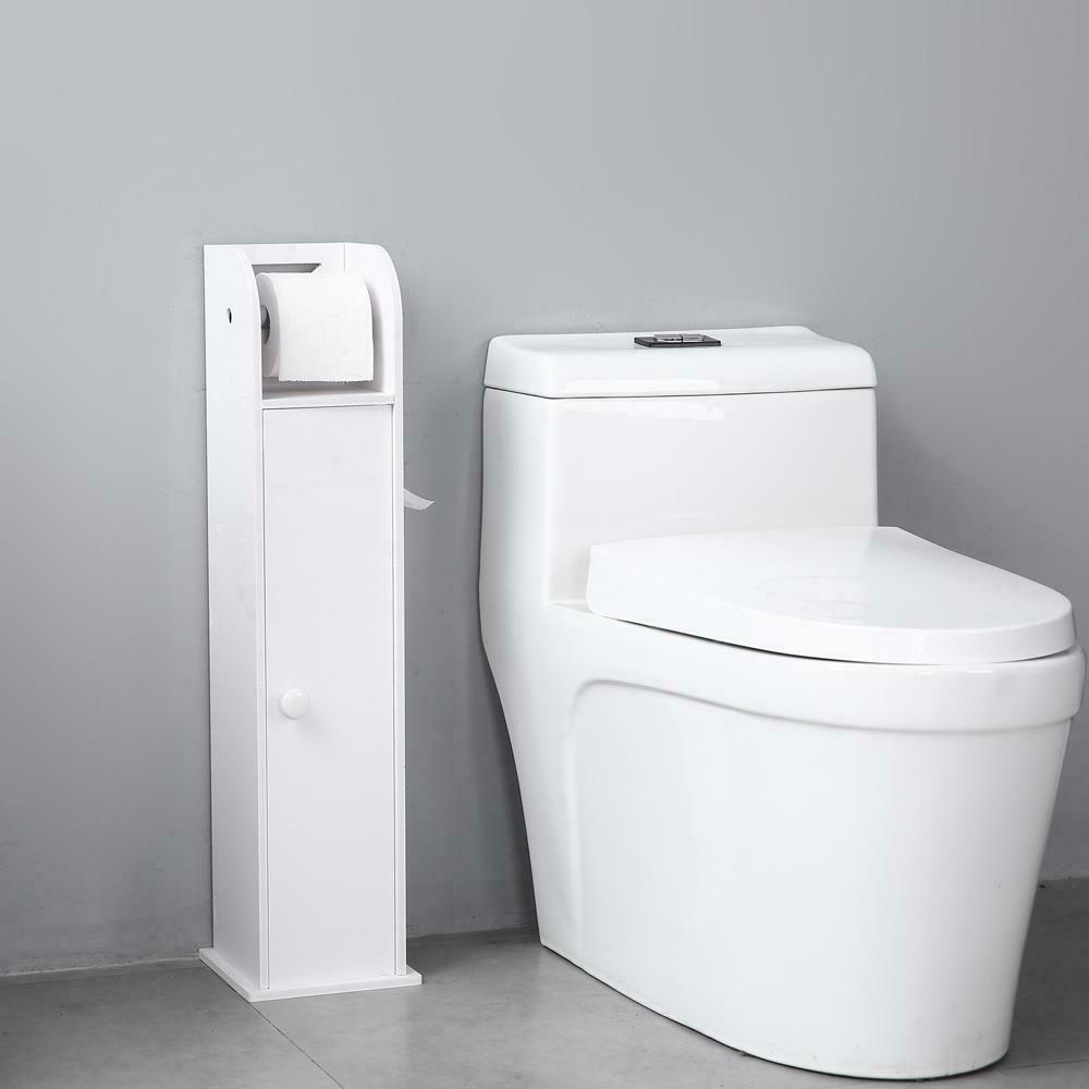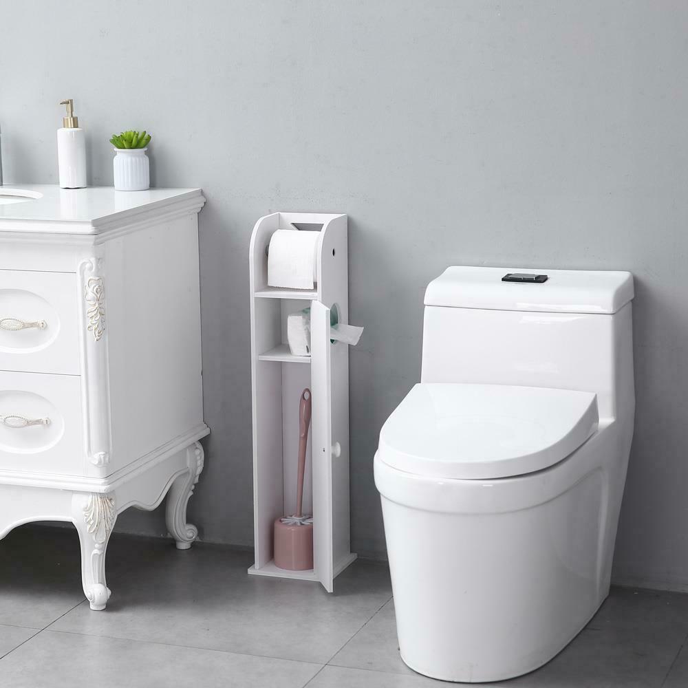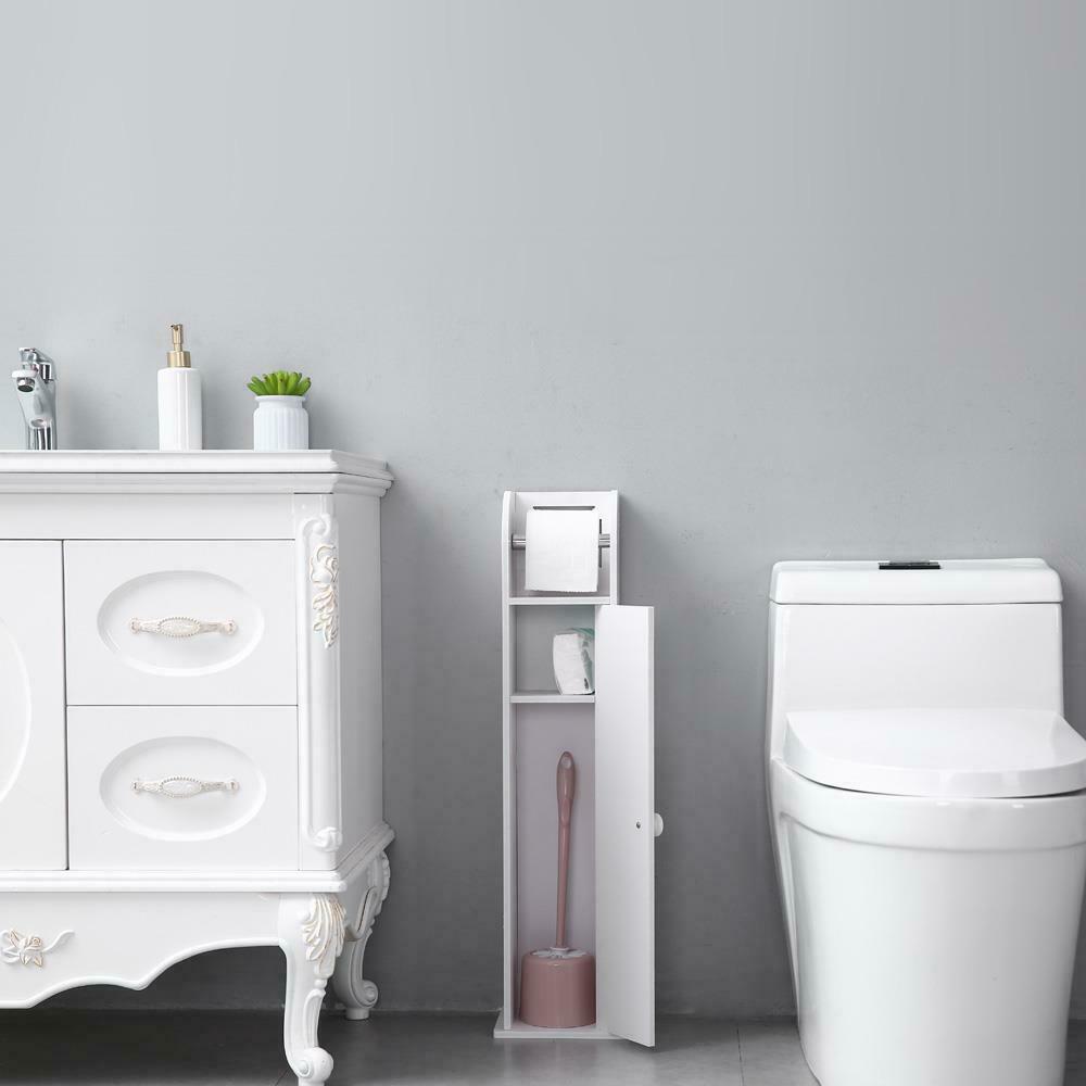 Narrow Bathroom Cabinet Toilet Paper Towel Storage Shelf with Paper Roll White