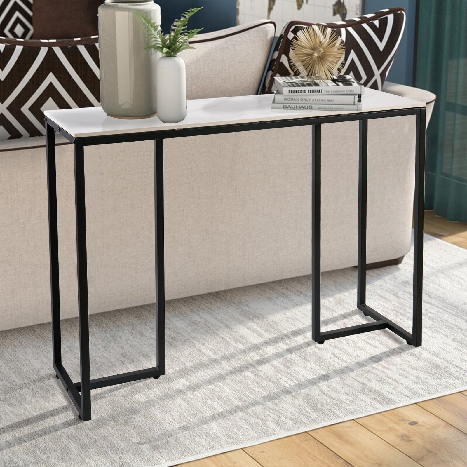 Narrow Long Entryway Coner Table Marble TopConsole Table Sofa Couch Accent Table