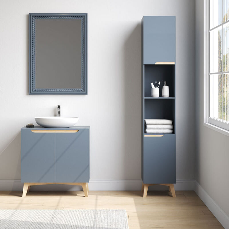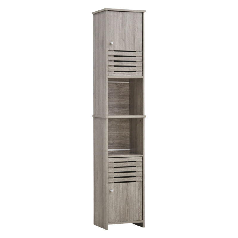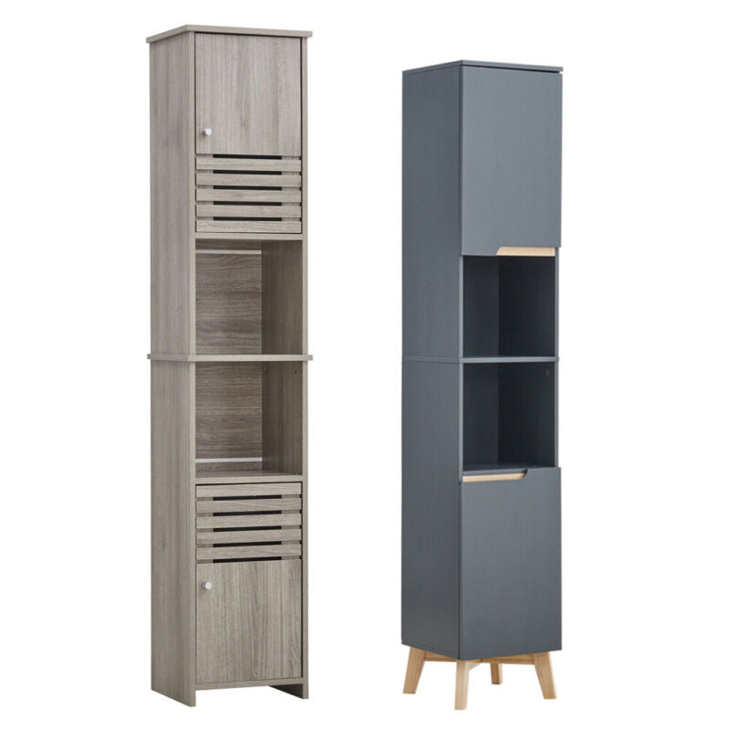 Narrow Modern Bathroom Tall Cabinet 2 Door Shelves Unit Storage Wooden Furniture