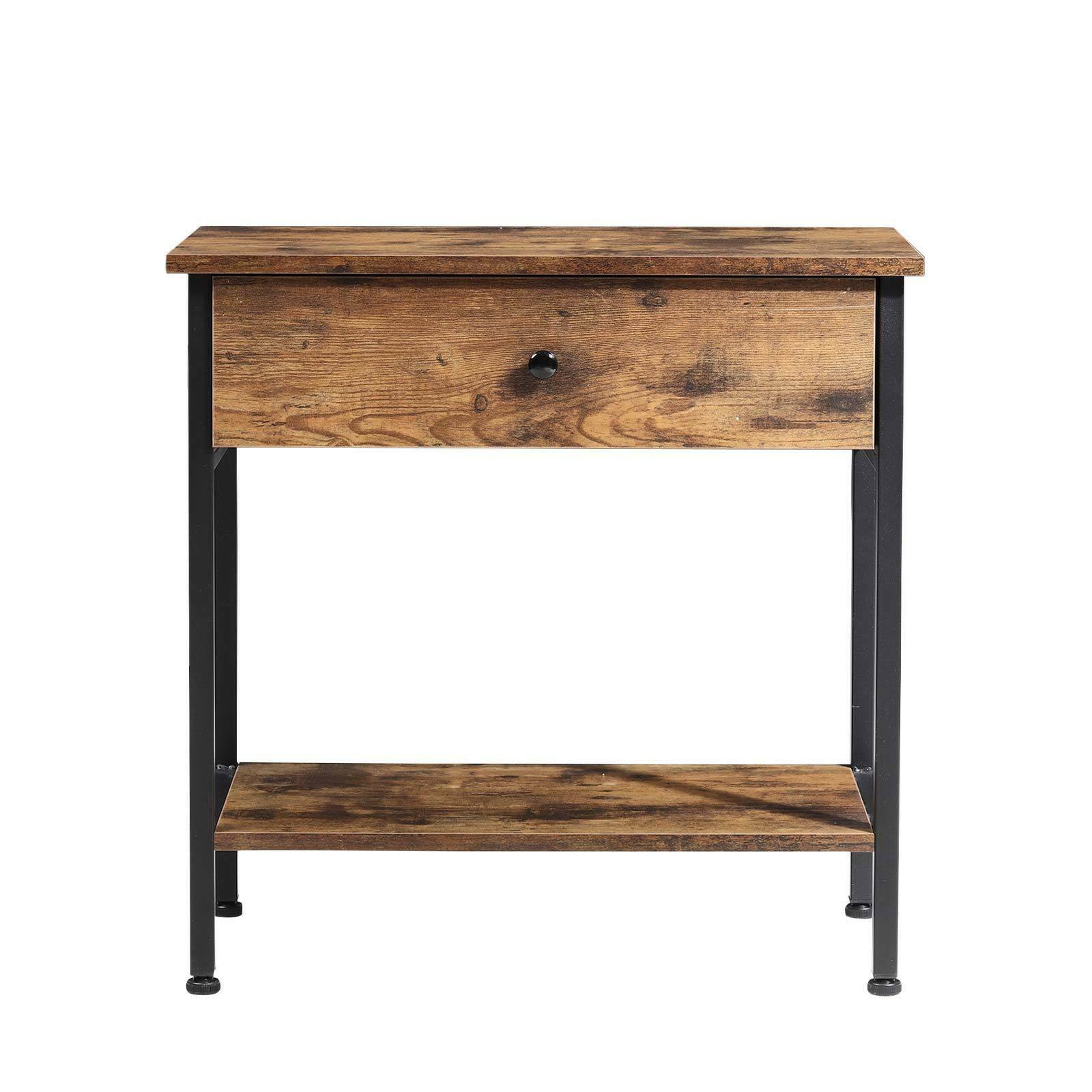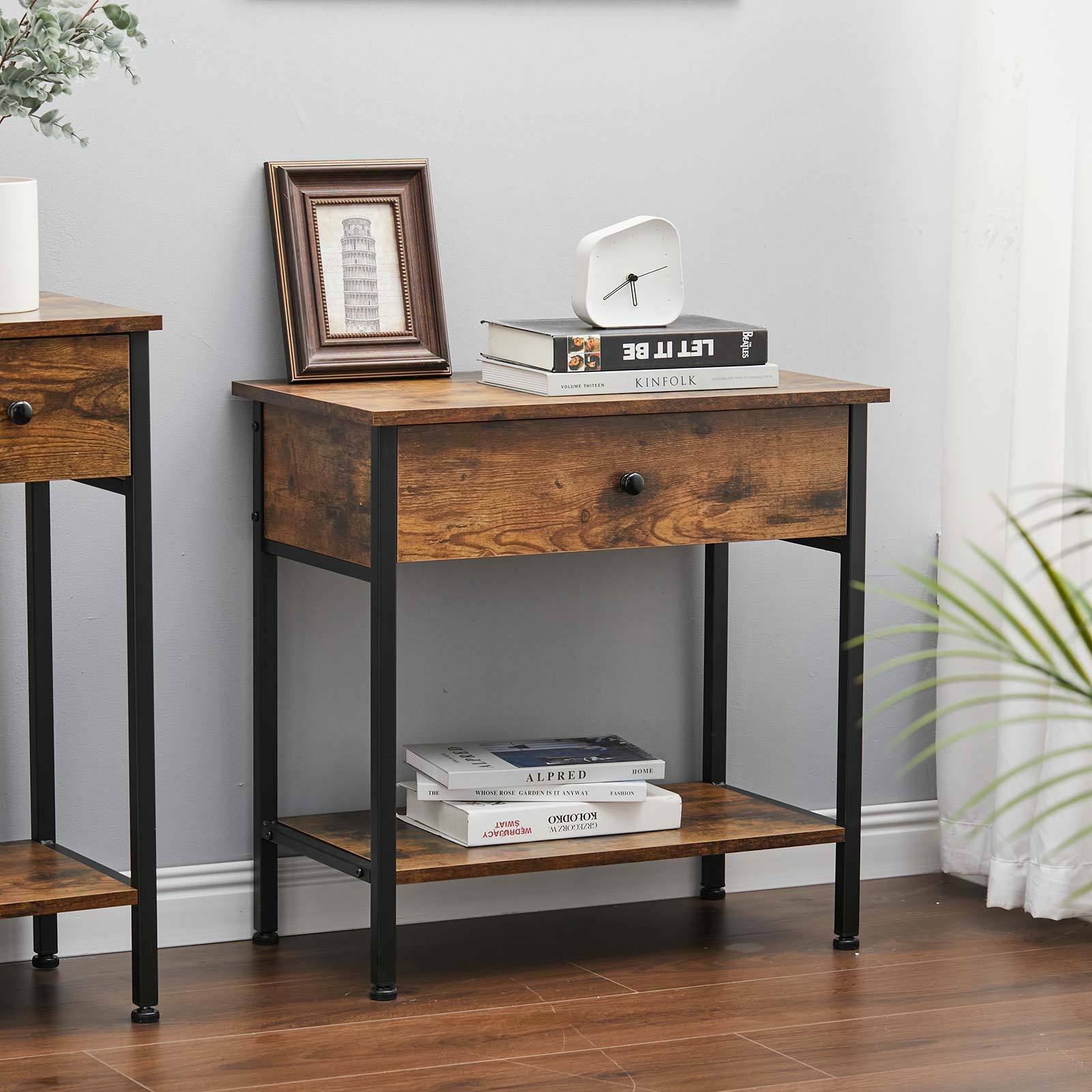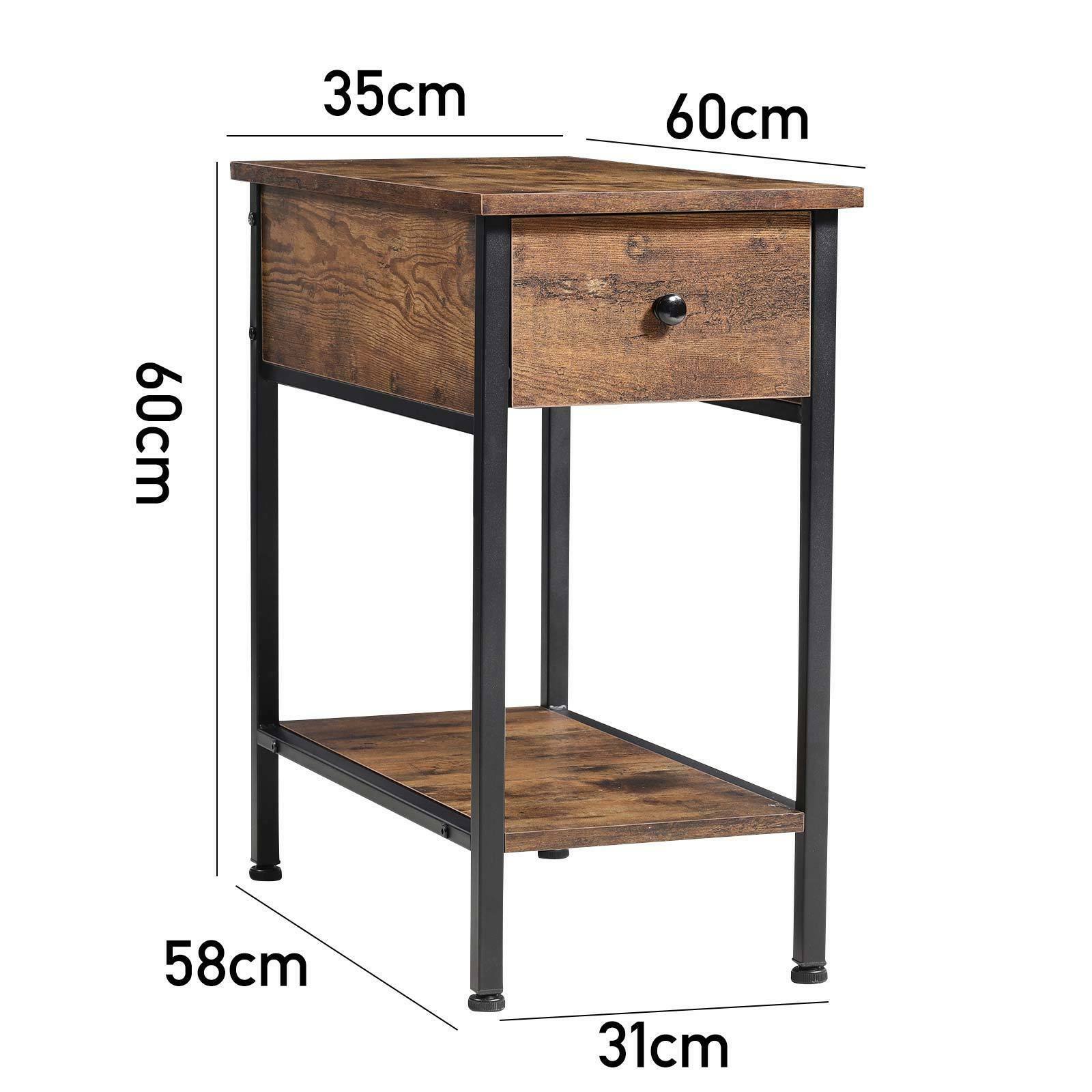 Narrow Side Table 2-Tier Console Desk with Drawer Wood Nightstand Open Shelf UK