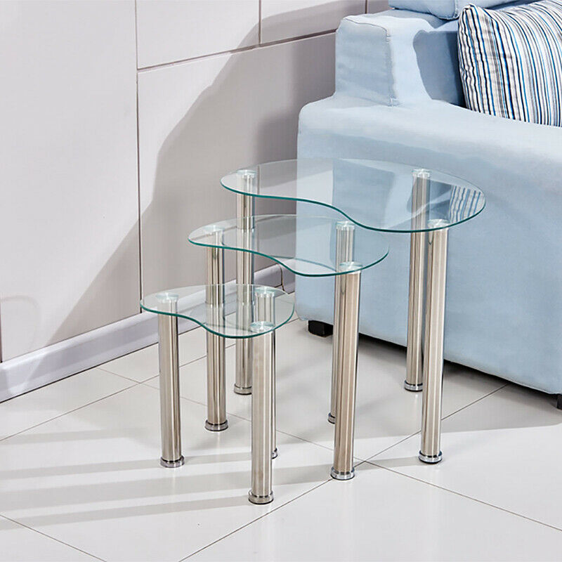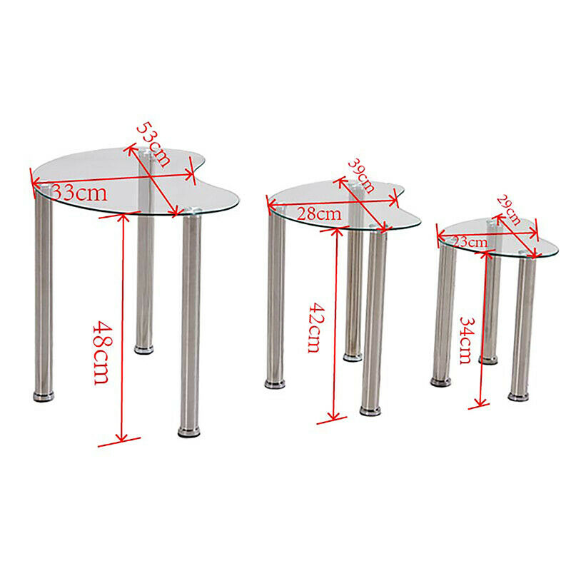 Nest of 3 Table Glass Set Side End Corner Sofa Table Chrome Legs Modern Clear UK