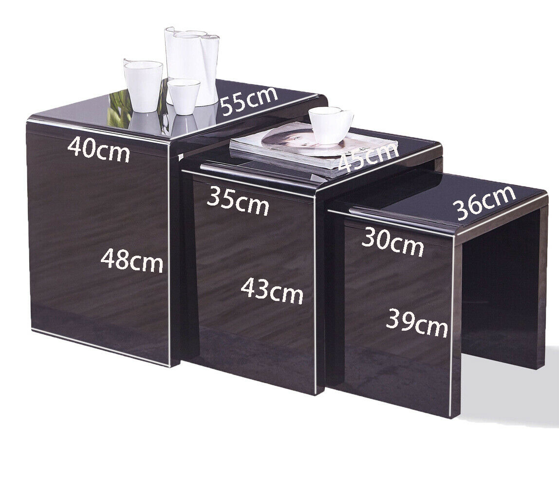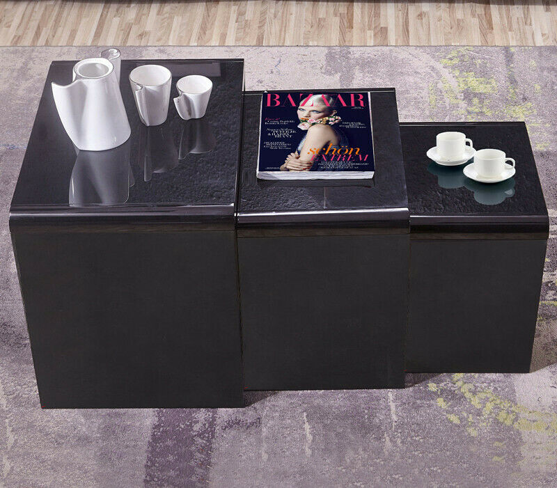 Nest of 3 Tables Coffee Table Nested Tea Lamp Side Living Room Furniture Black