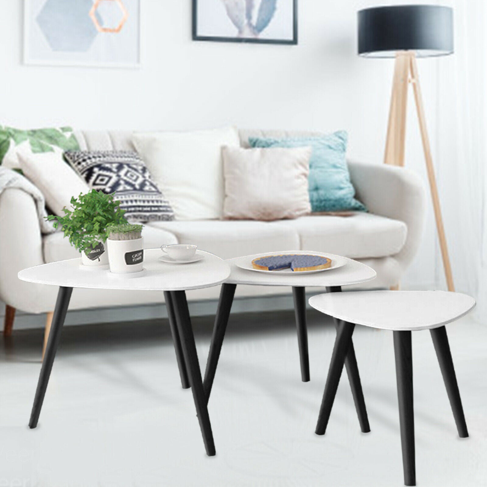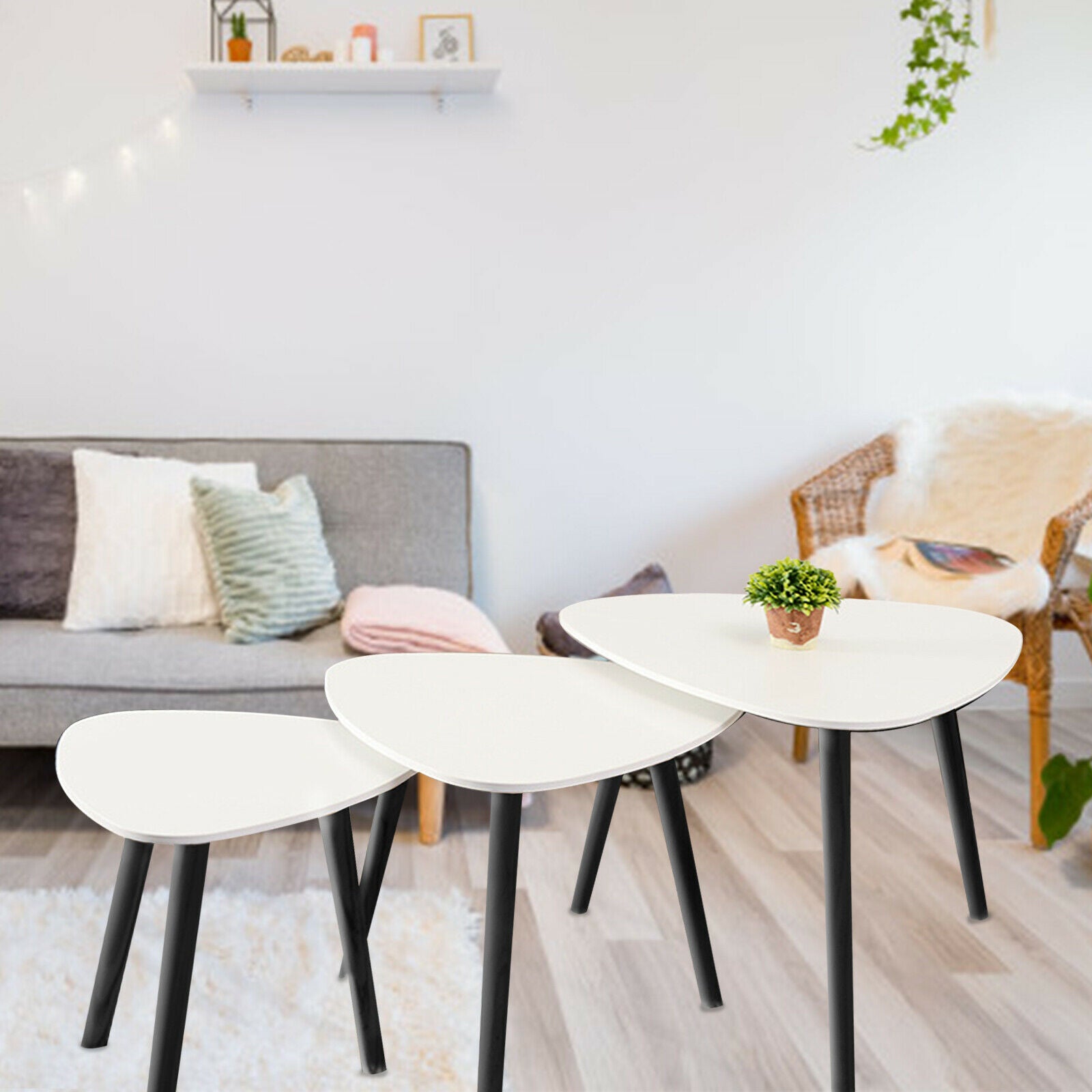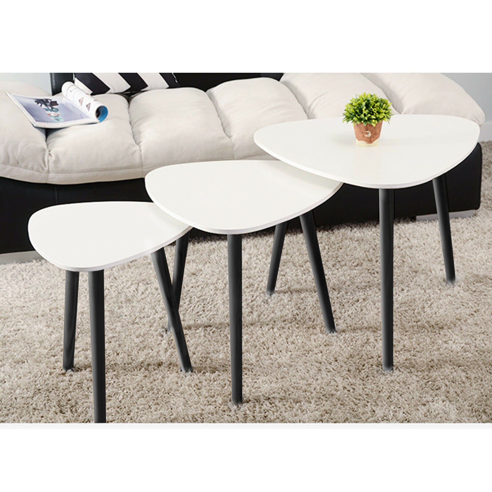 Nest of 3 Tables Gloss White Nested Tea Lamp Side Living Room Coffee Table
