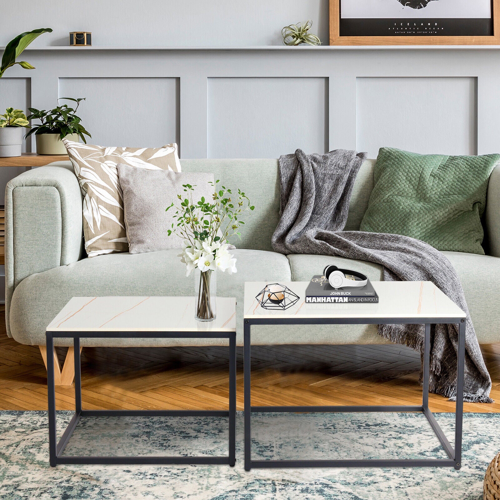 Nest of Table Durable Sturdy White Marble Coffee Side End Table Square Furniture
