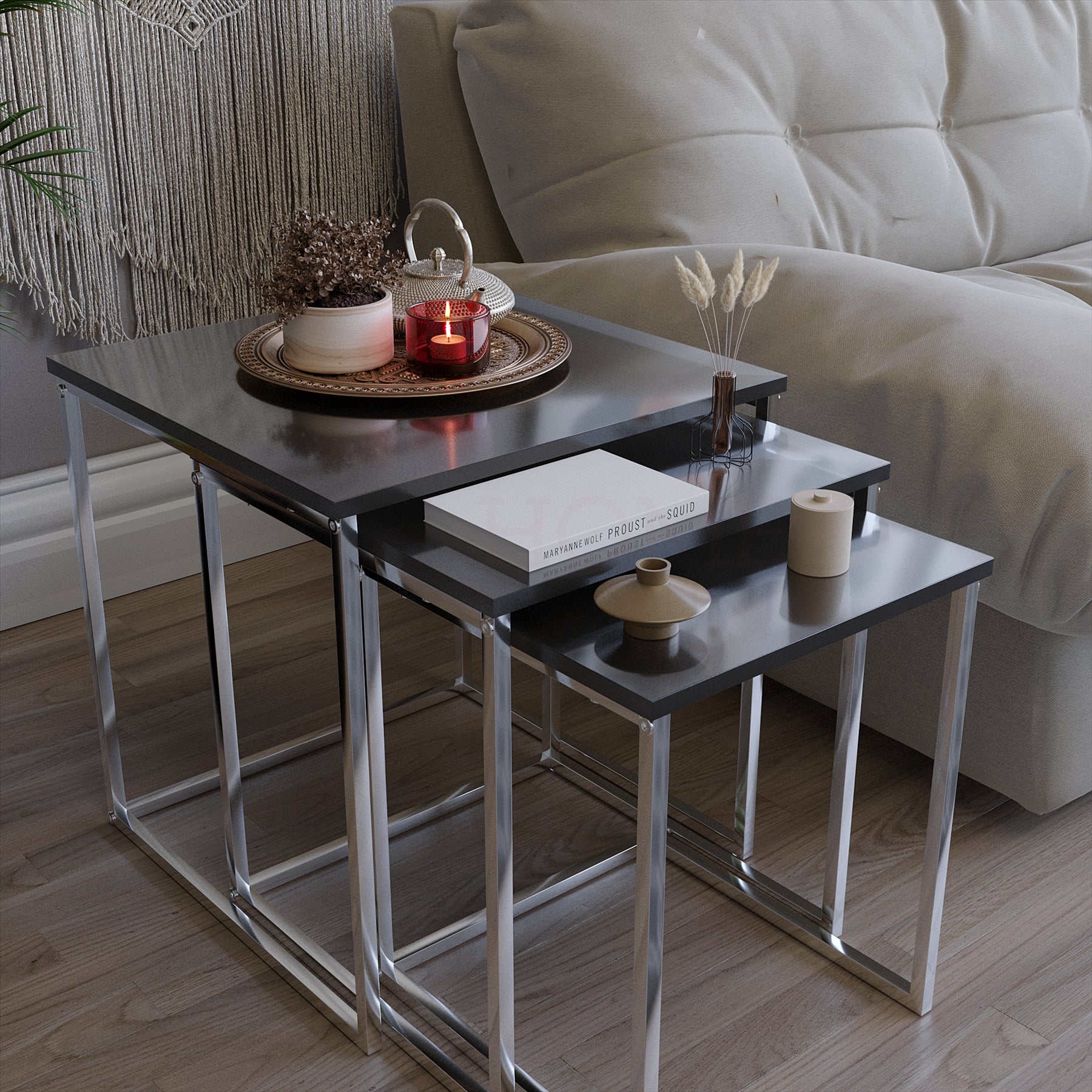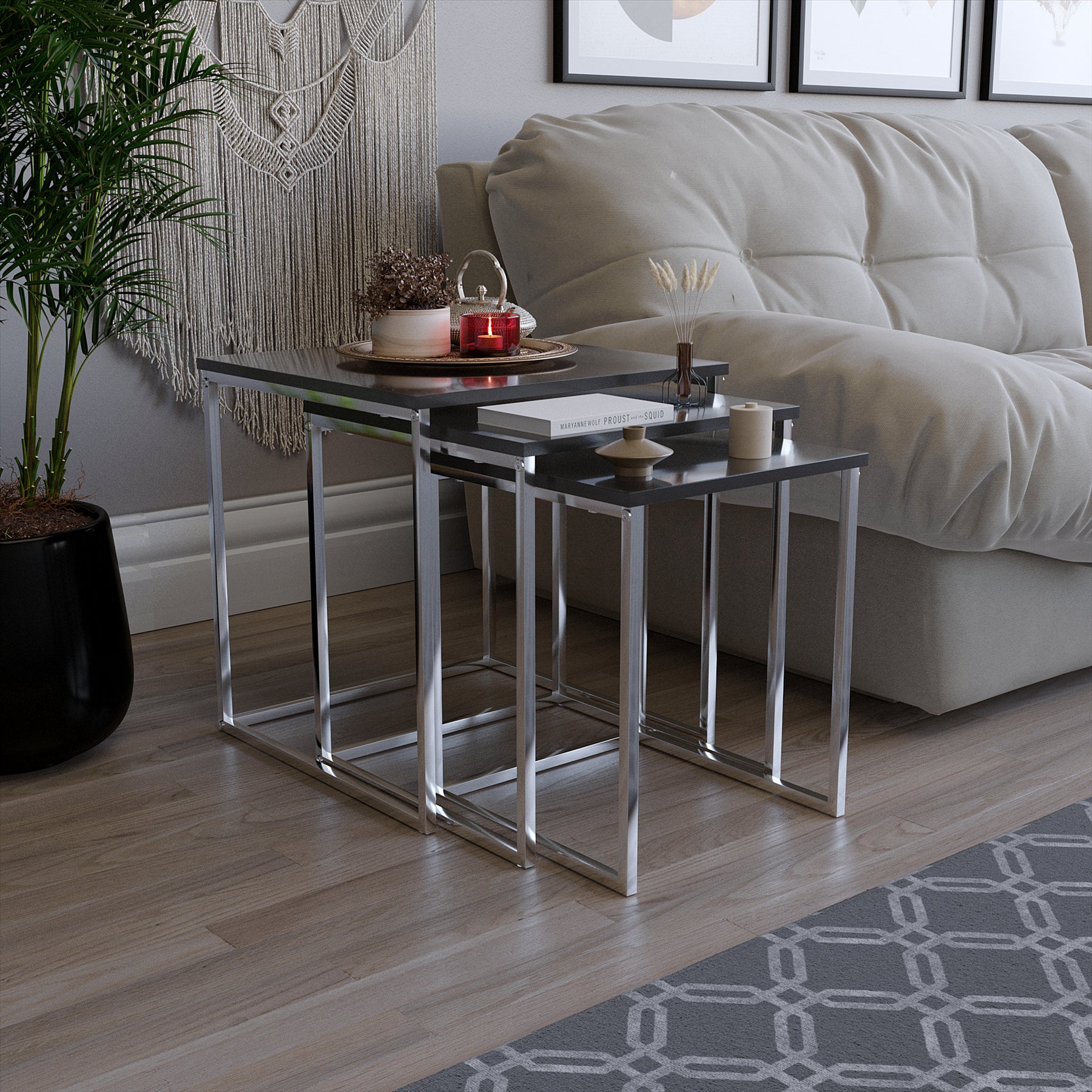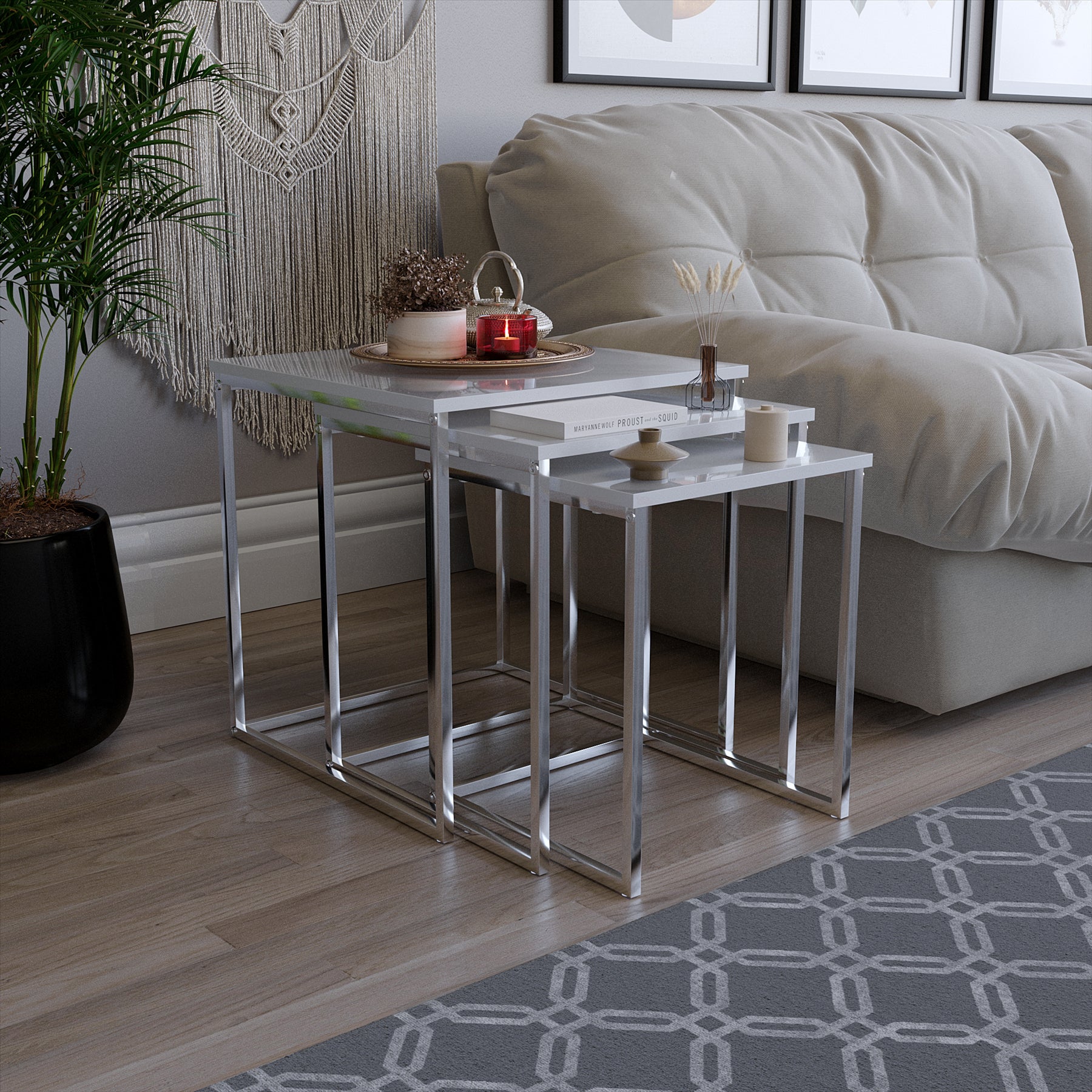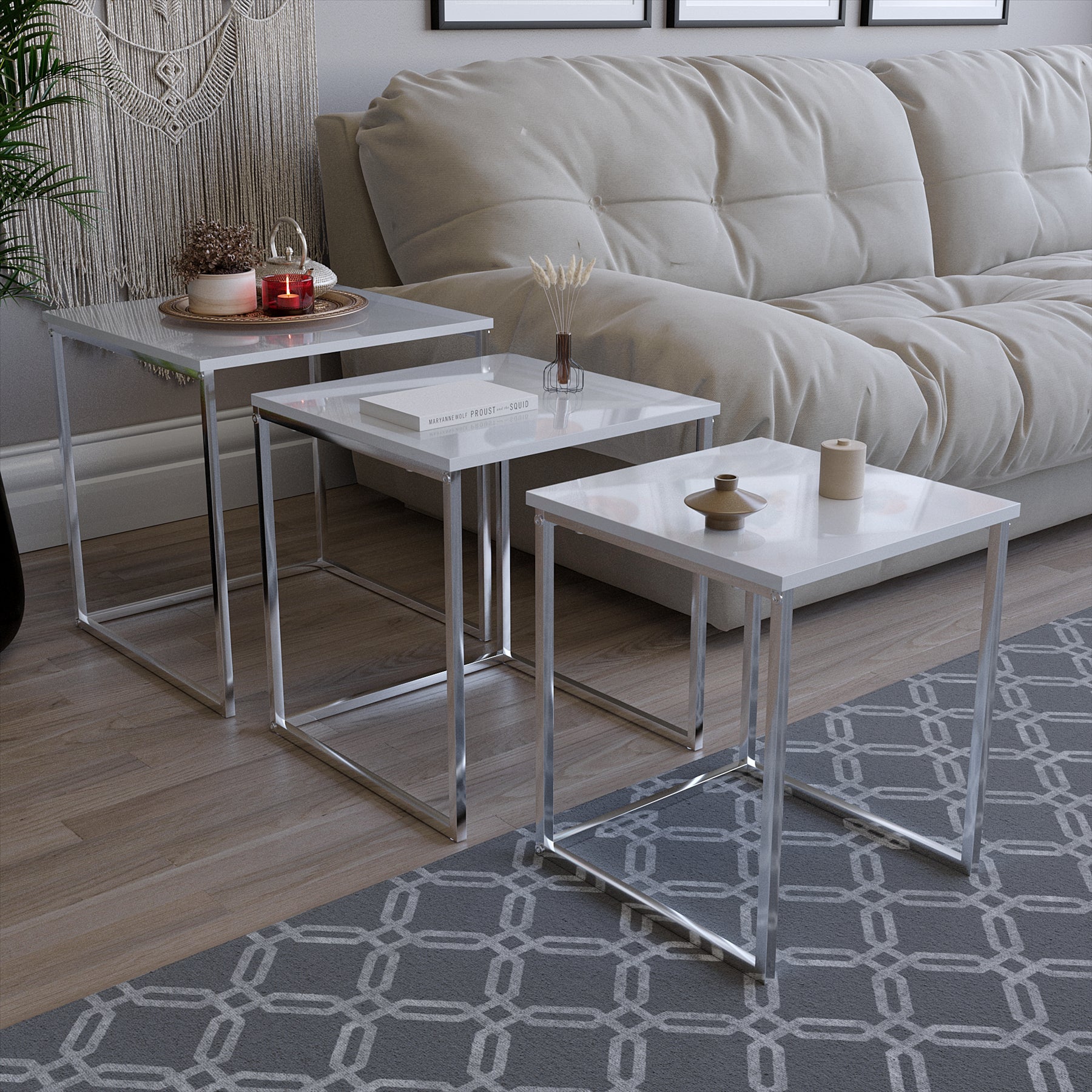 Nest of Tables High Gloss Set of 3 Nesting Coffee Side End Table Furniture