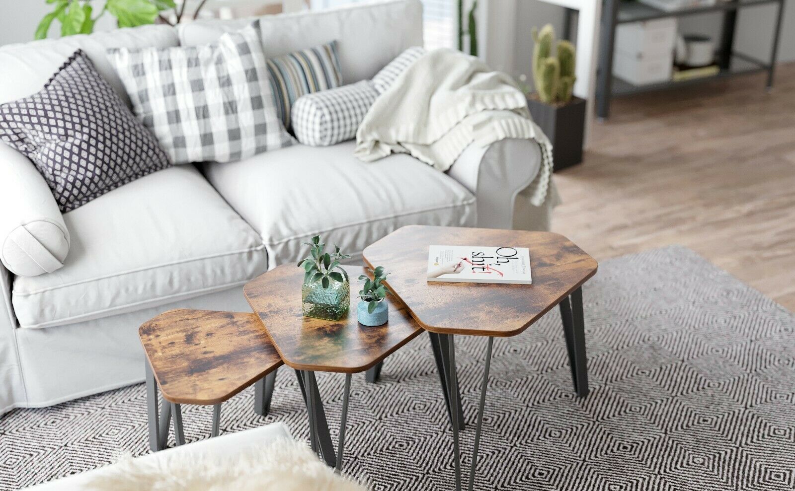 Nesting Coffee Table Industrial Set of 3 End Tables Stacking Side Tables LNT14BX