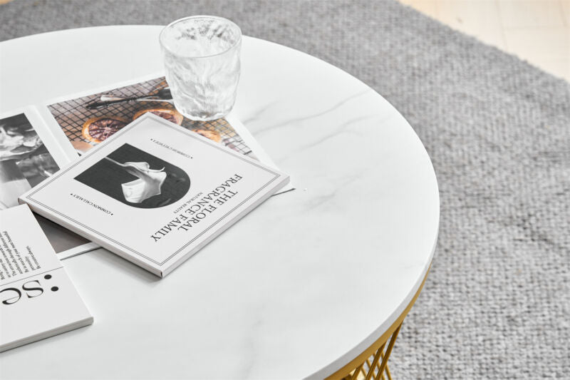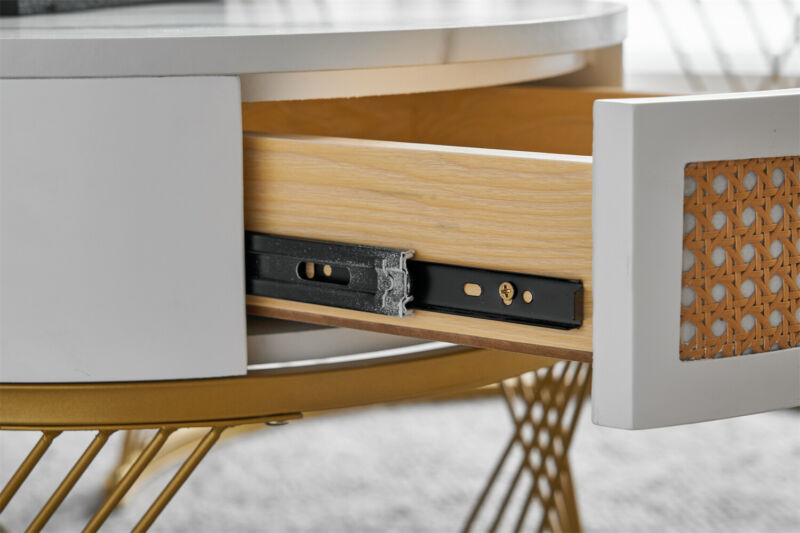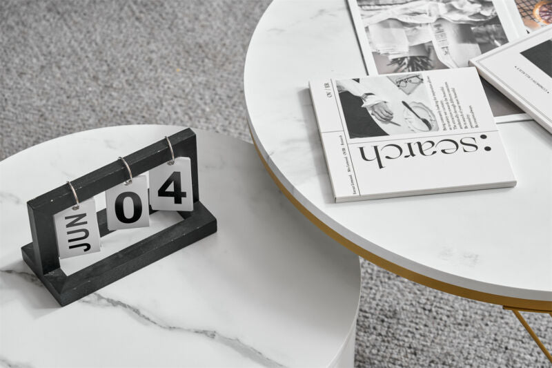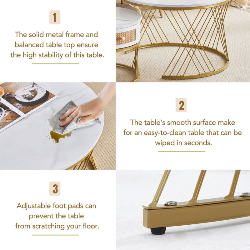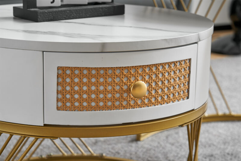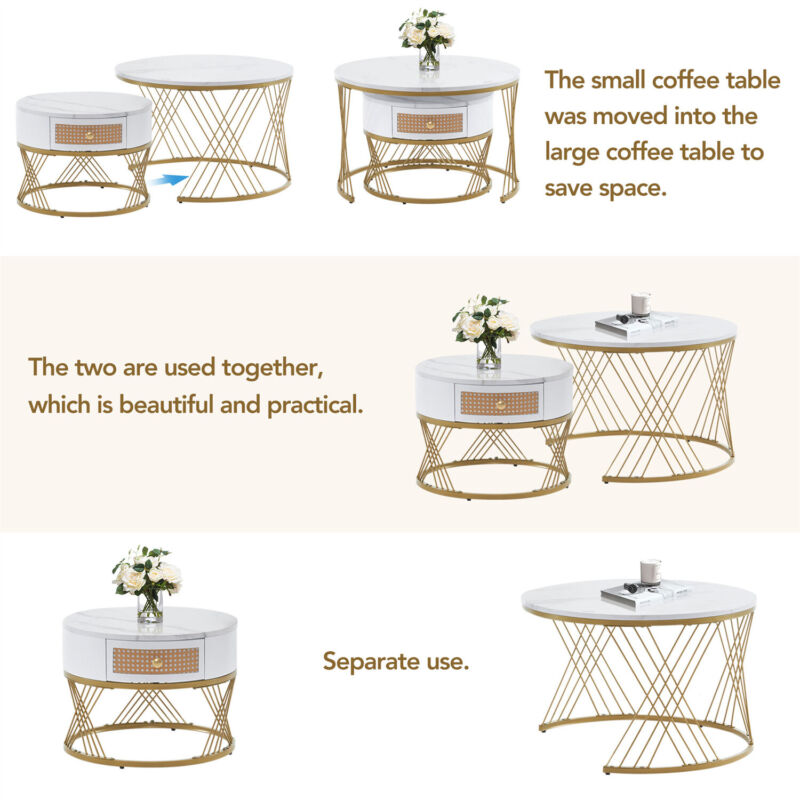 Nesting Coffee Table Set of 2 Living Room Marble Look Side End Table with Drawer