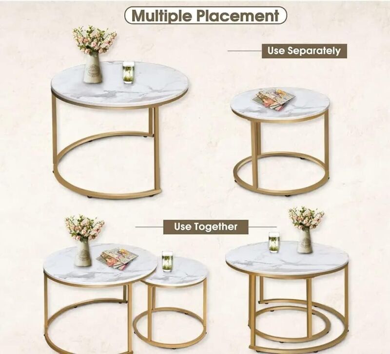 Nesting Coffee Table Set of 2 Living Room Round Stacking Side End Table White