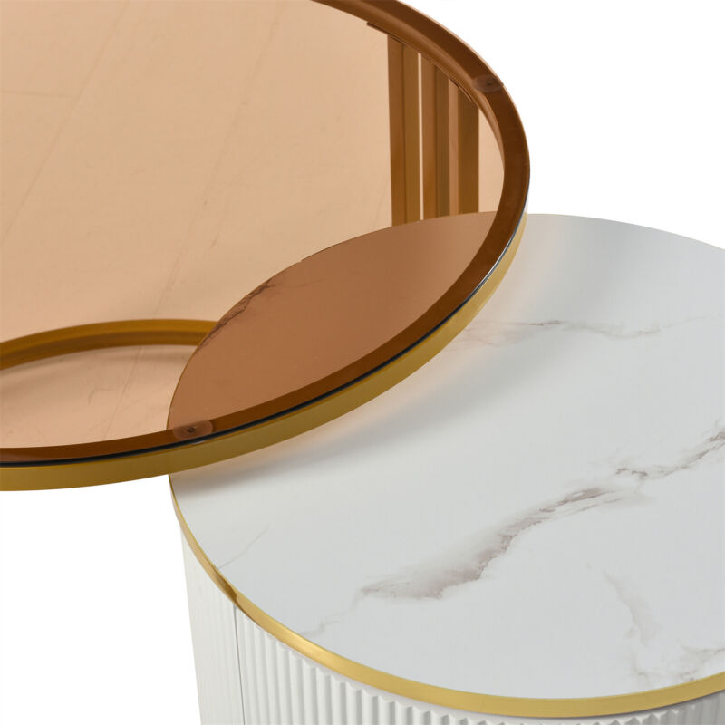 Nesting Coffee Tables Set of 2 Round Stacking Side Tables with Storage Drawers