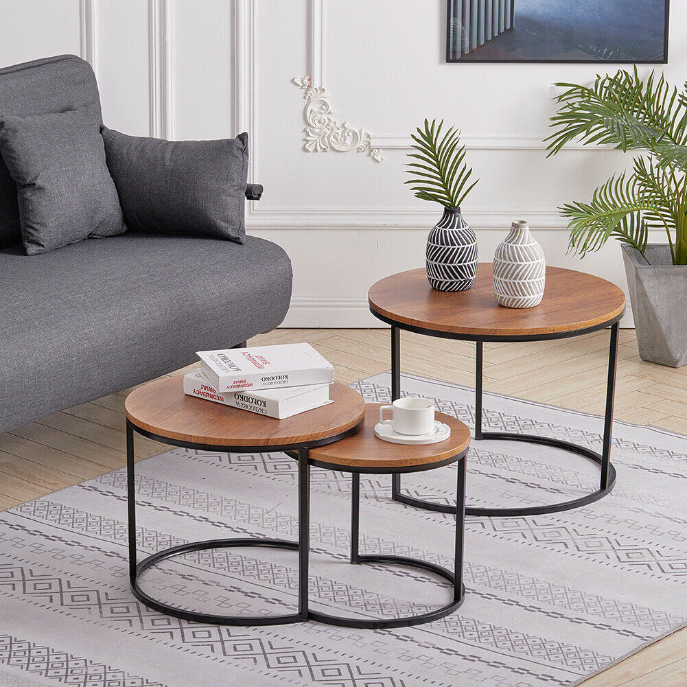 Nesting Table 2/3pcs Round Nested Side End Coffee Table Lamp Stand Living Room