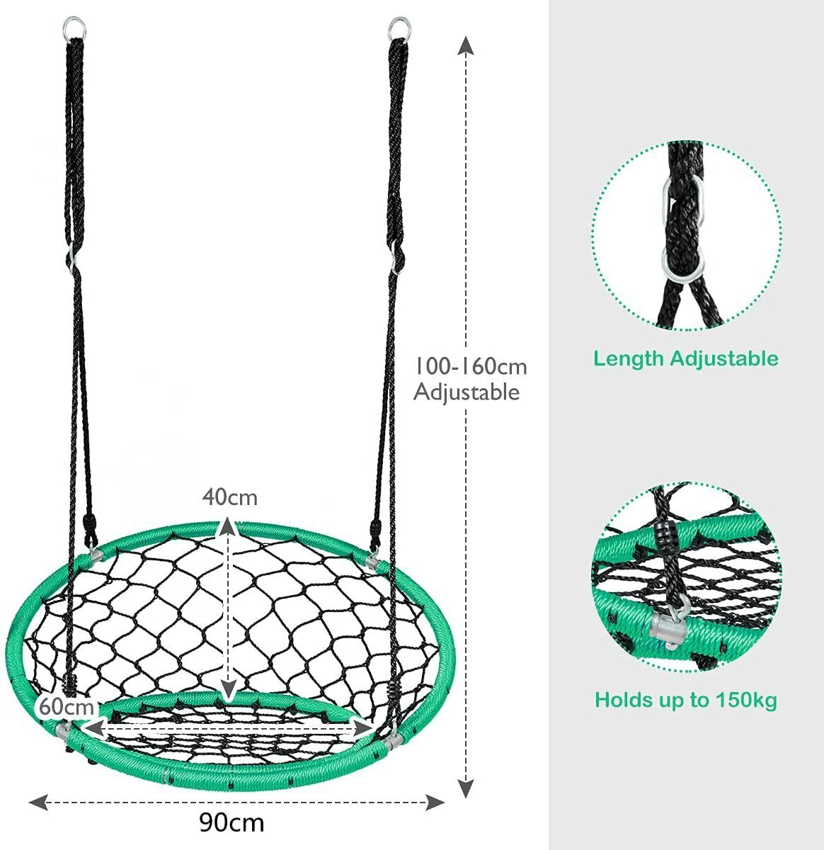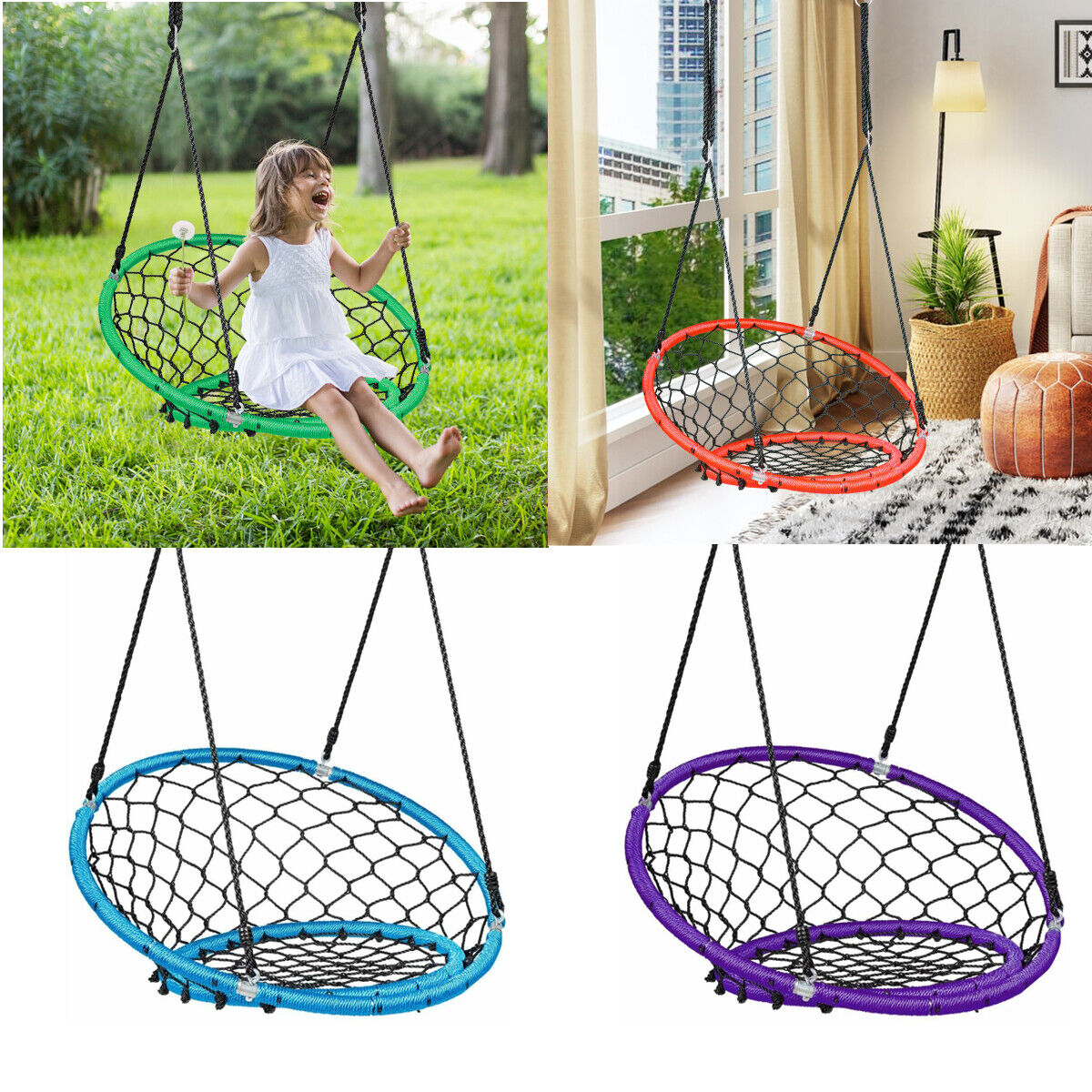 Net Hanging Swing Chair Kids Indoor Outdoor Play Equipment W/ Adjustable Ropes