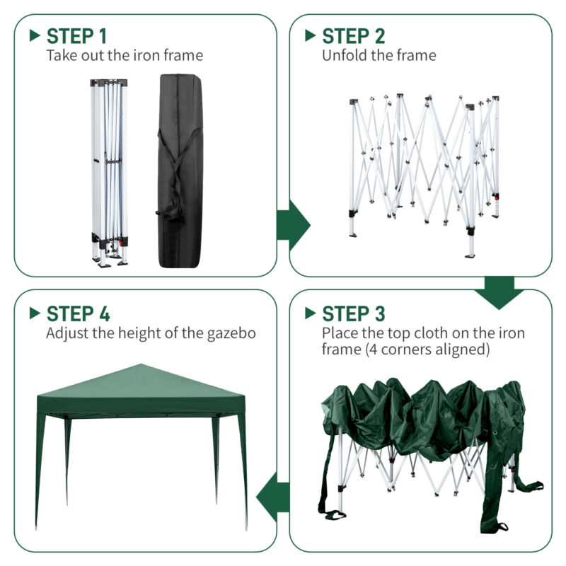 Adjustable Height, UV Protected, Durable, Foldable, Heat Resistant, Pop-up, Folding, Steel Frame