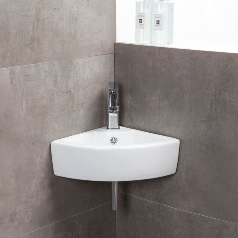 New Corner Basin Sink Bathroom Cloakroom Wall Corner Ceramic Wall Hung UK