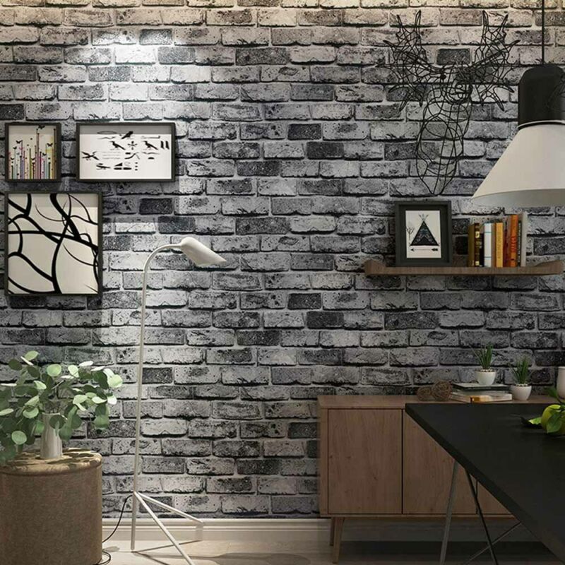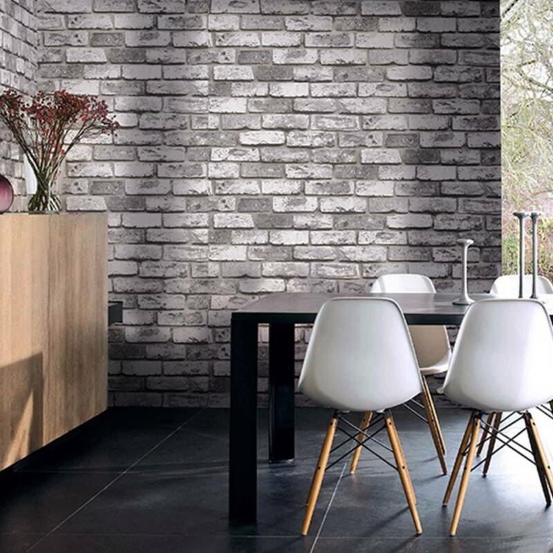 New Grey Brick Wall Grey Shimmer Tones Effect Faux Metallic Feature Wallpaper 3D