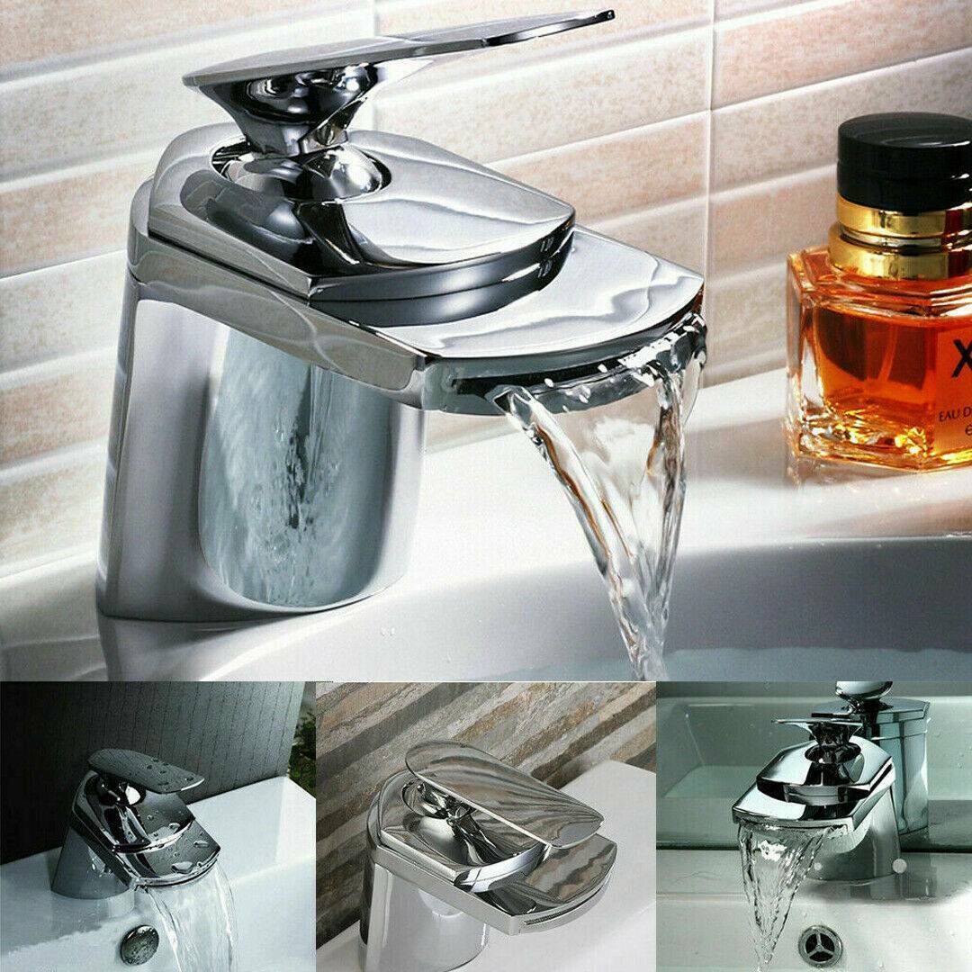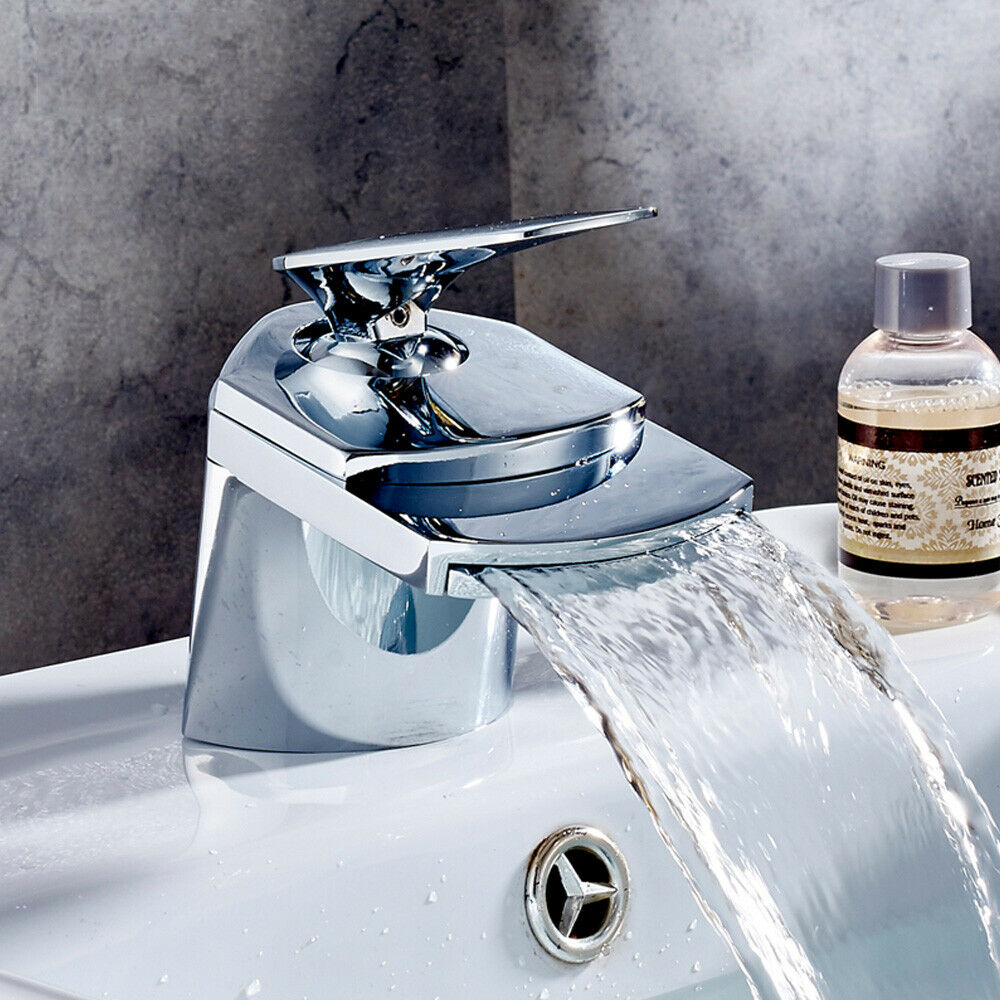 NEW Modern Waterfall Bathroom Tap Basin Sink Mono Mixer Chrome Cloakroom