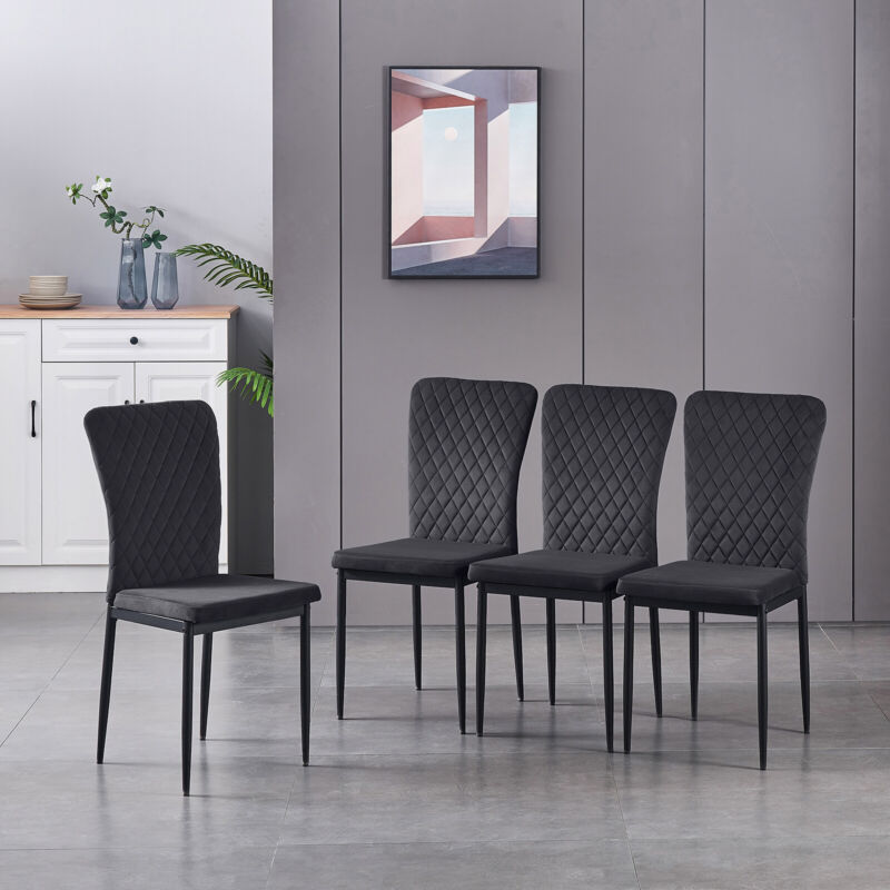 New Set of 4/6 Dining Chairs Padded Seat High back Metal Legs Home Furniture