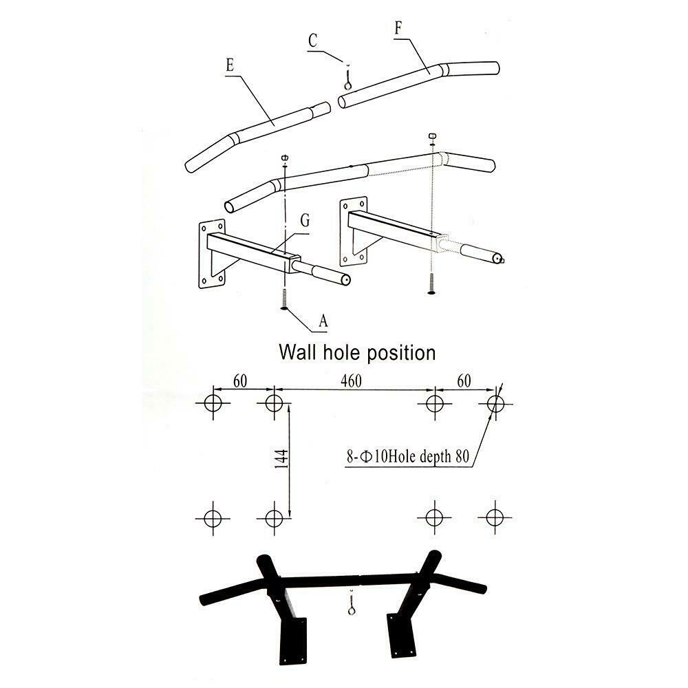 New Wall-Mounted Pull-Up Horizontal Bar Chin Up Exerecise with Foam Grips