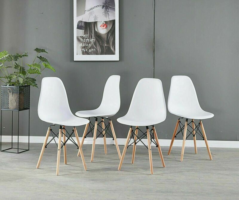 New White Eiffel Style Breakfast Dining Chair Seat Wooden Leg Home Office Garden