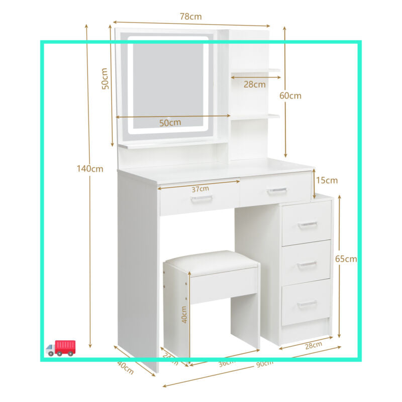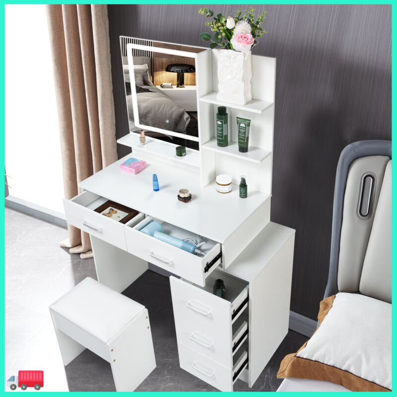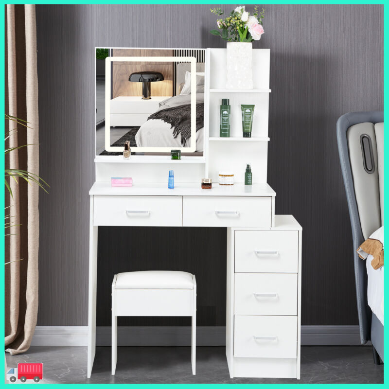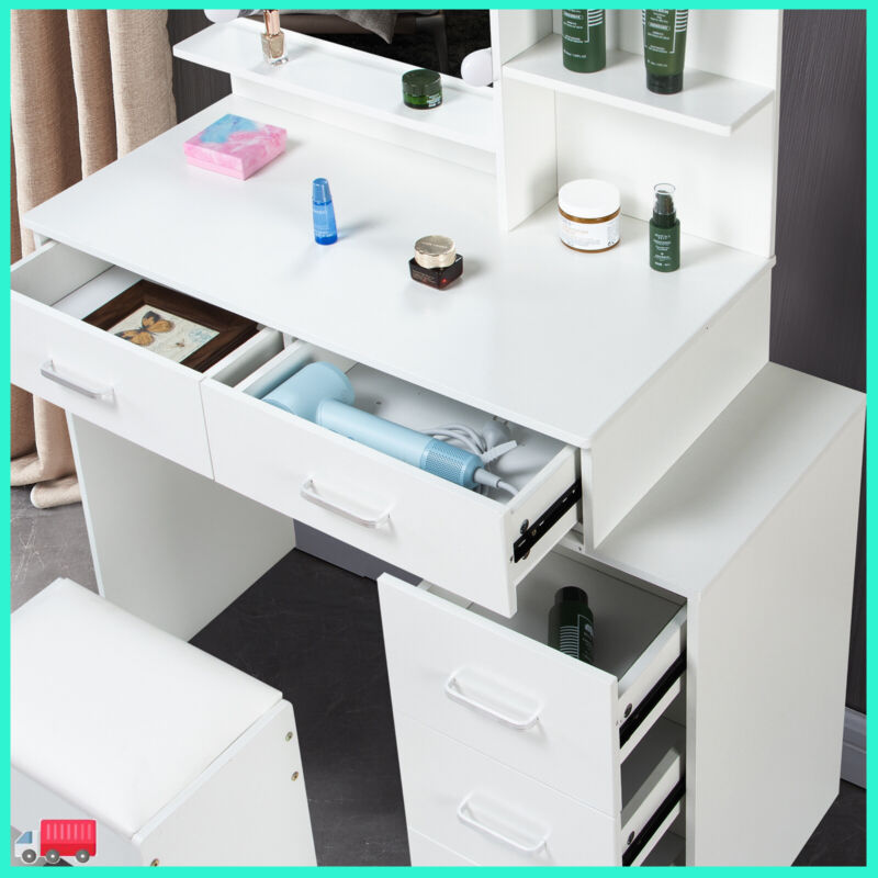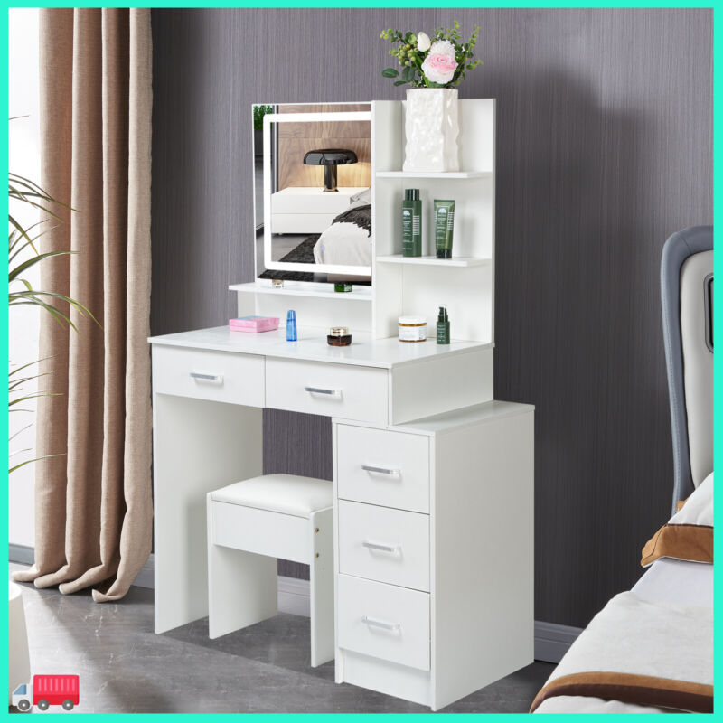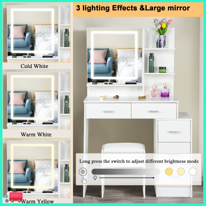 New White Hollywood LED Lights Mirror Makeup Dressing Table Vanity Set 3 Shelves