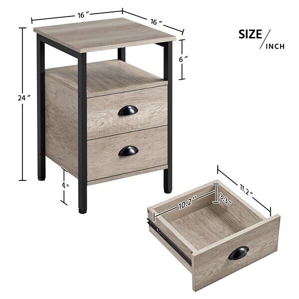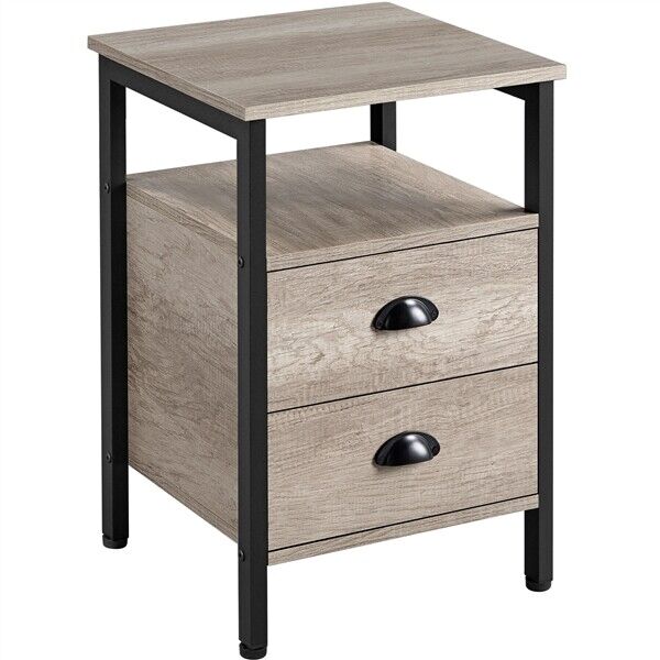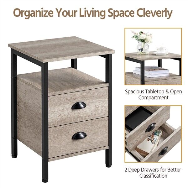 Nightstand End Table with 2 Drawers,Bedside Table With Strong Metal Frame,Gray