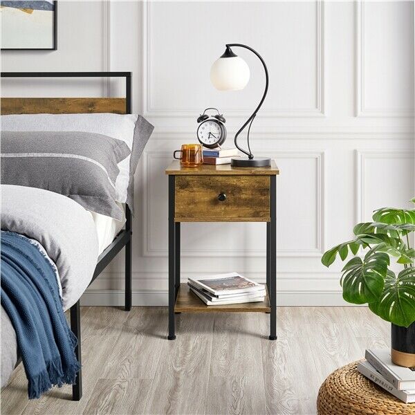Nightstand Side table Rustic End Table with 1 Drawer and Open Shelf for Bedroom