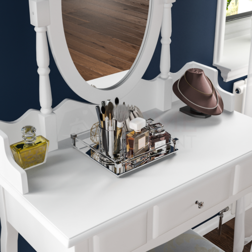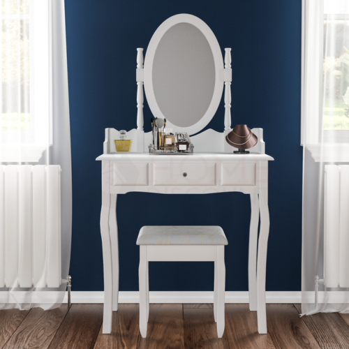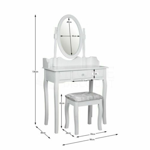 Nishano Dressing Table 1 Drawer Stool White Mirror Bedroom Makeup Desk Dresser