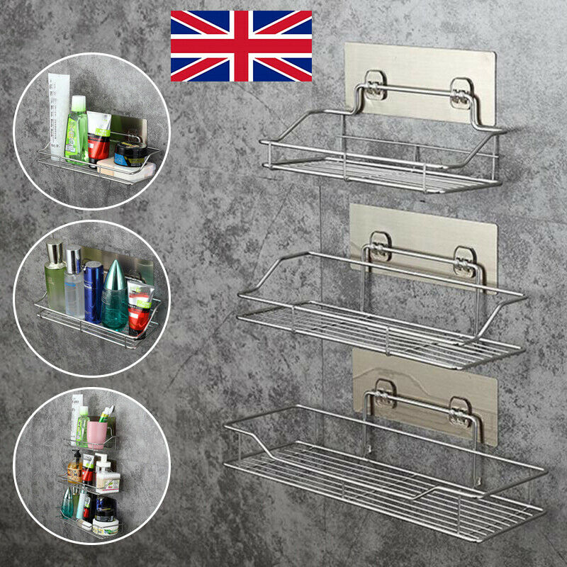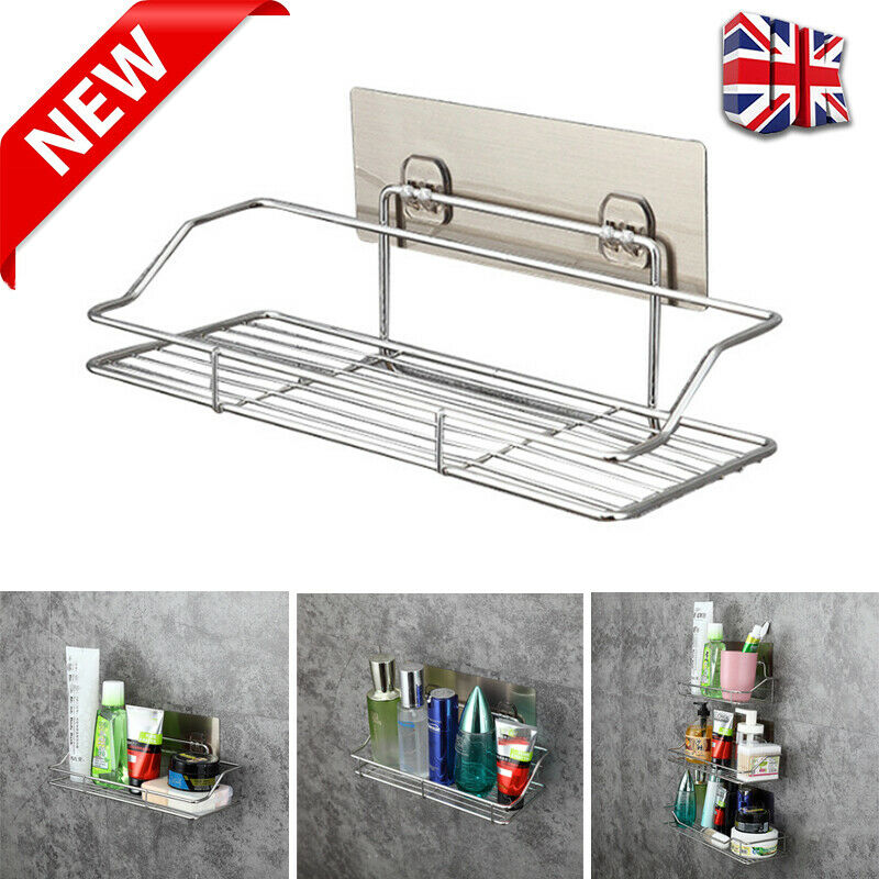 Non Rust Stainless Steel Bathroom Shower Shelf Storage Suction Basket Caddy Tidy