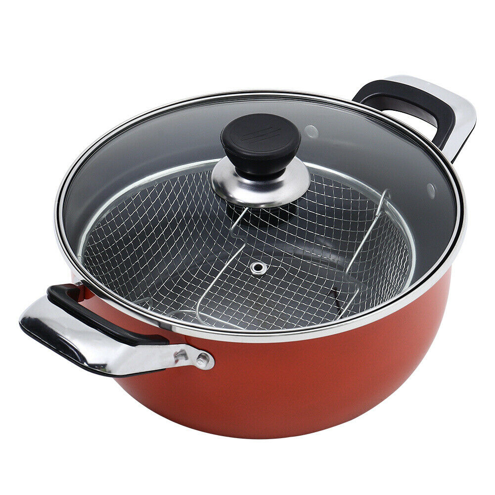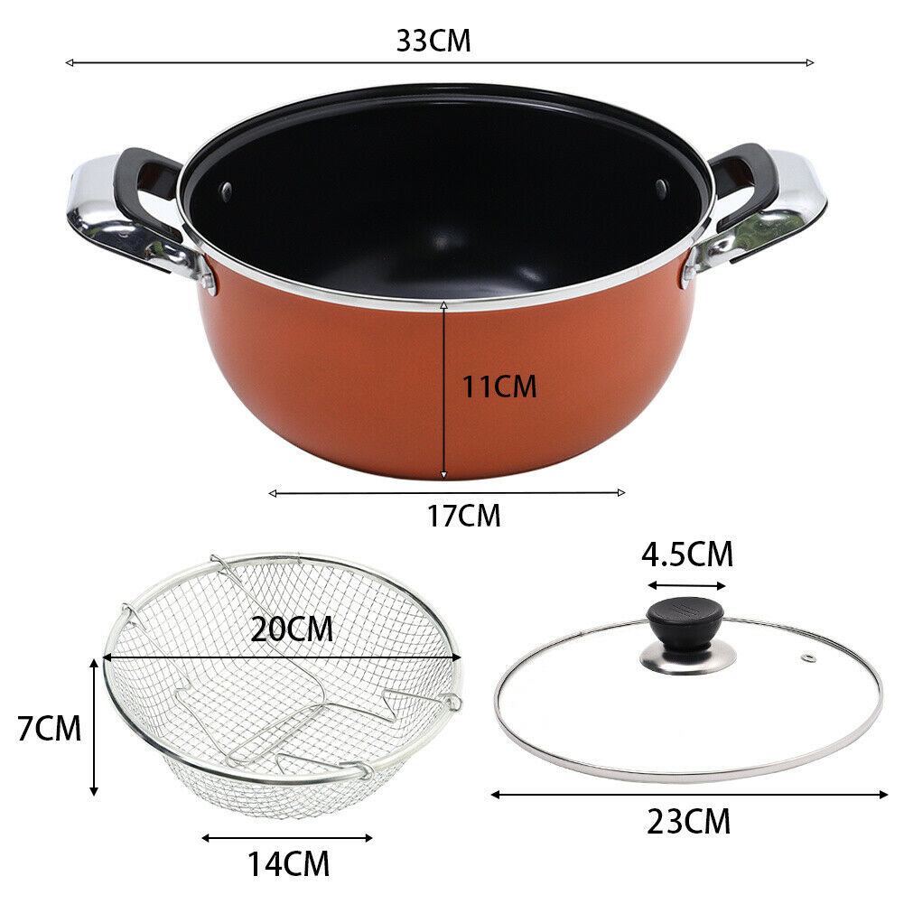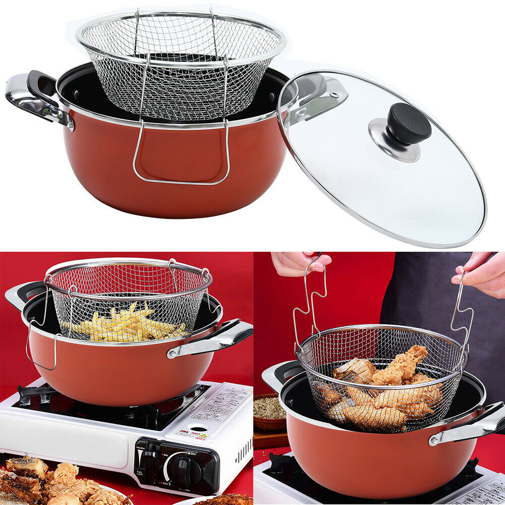 Non Stick Chip Pan Set Fryer Deep Fat Frying Basket Pot Kitchen With Glass Lid