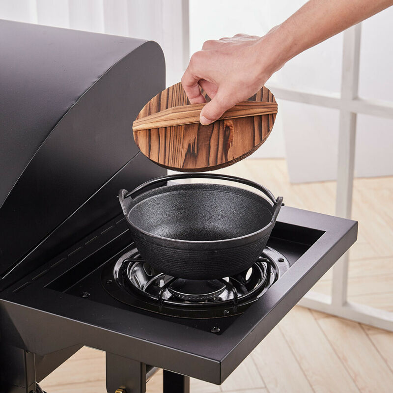 NonStick Cast Iron Pot with Wood Lid Cooking Hanging Stew Souppot Open Fire Pan
