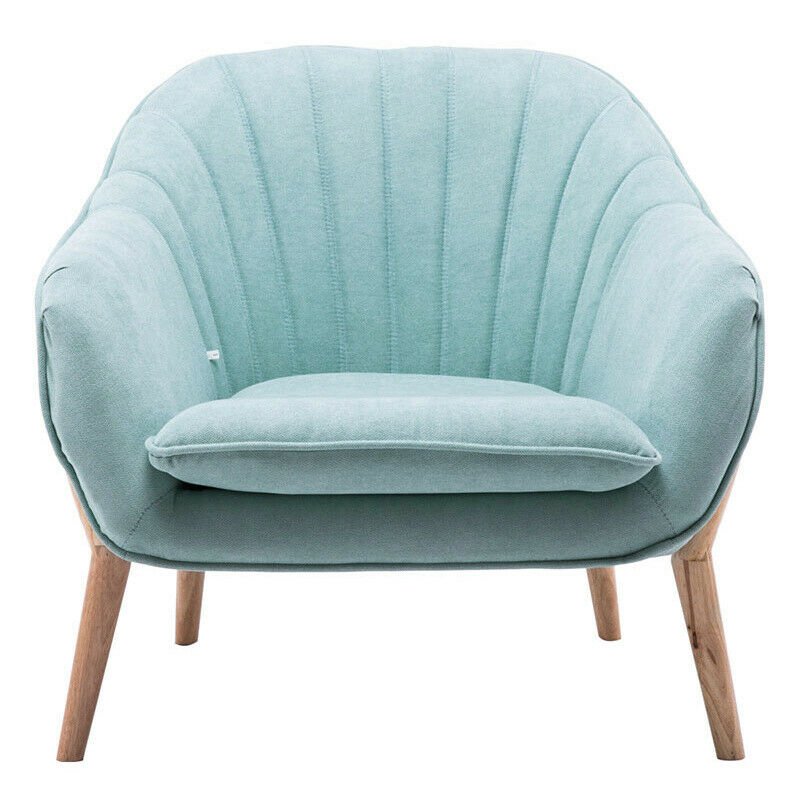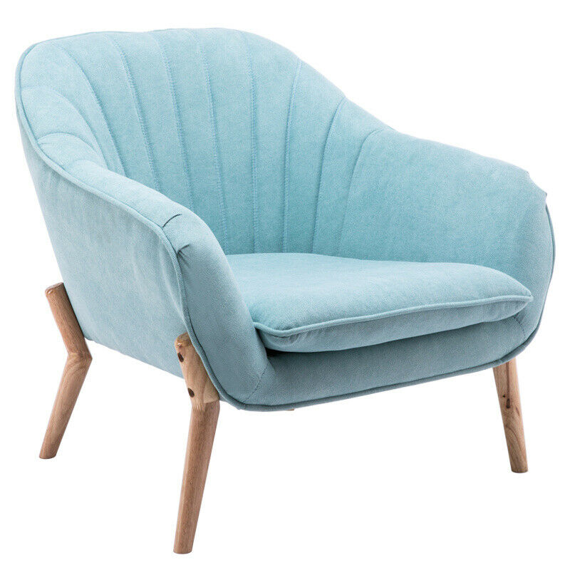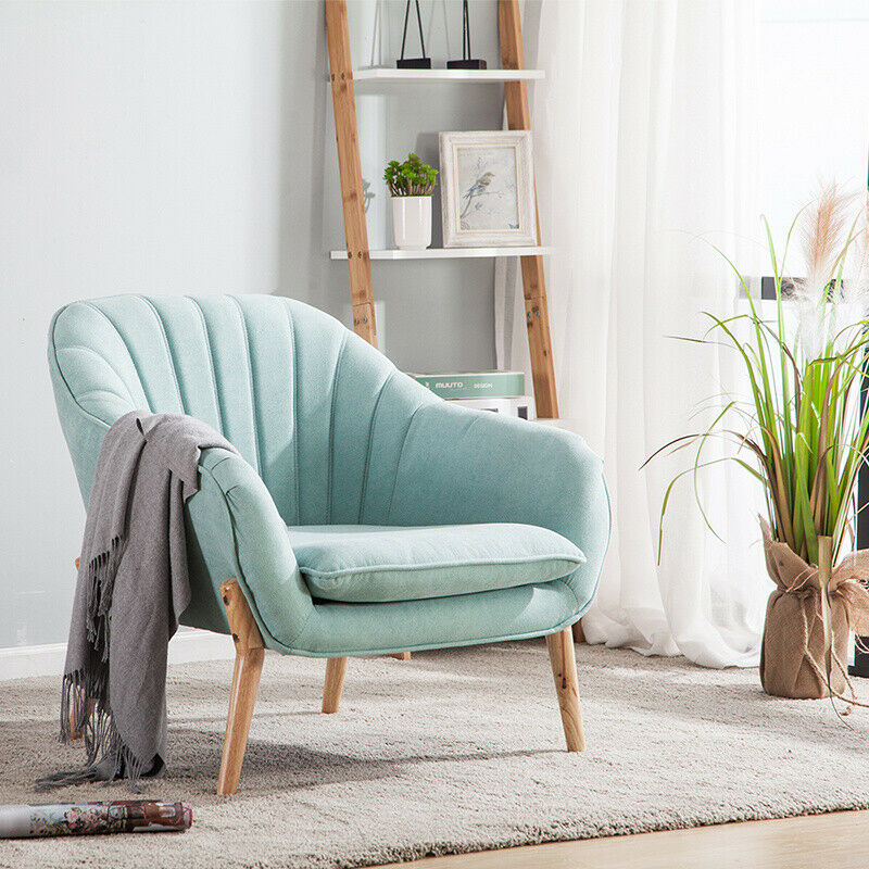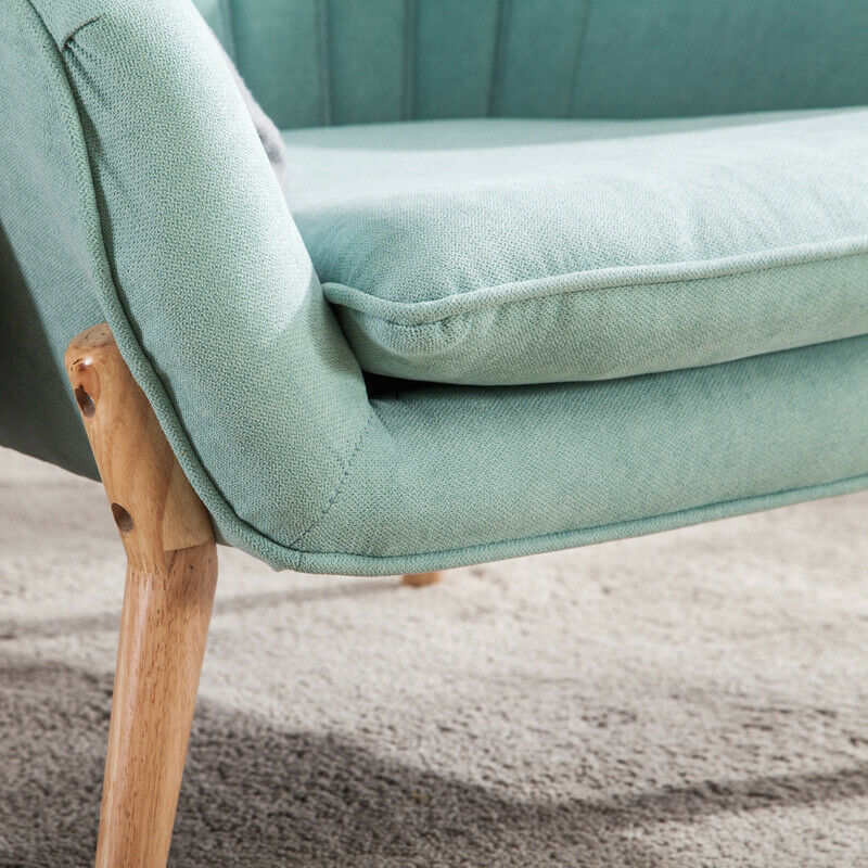 Nordic Style Scalloped Back Soft Armchair Wing Chair Sofa Wooden Legs Upholstery