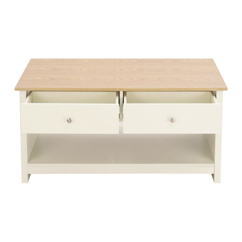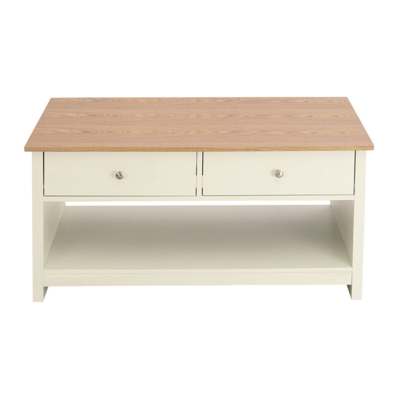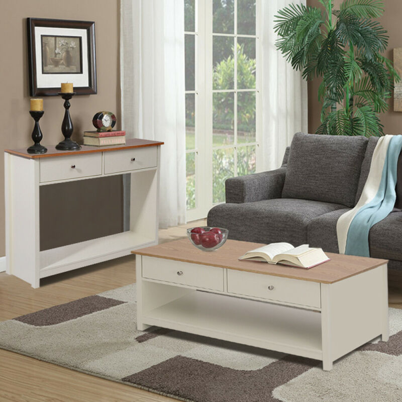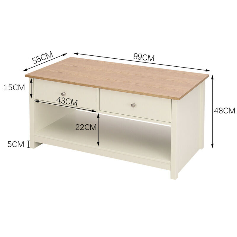 Nordic Style Wooden Loft Coffee Table with 2 Storage Drawers Living Room Tables